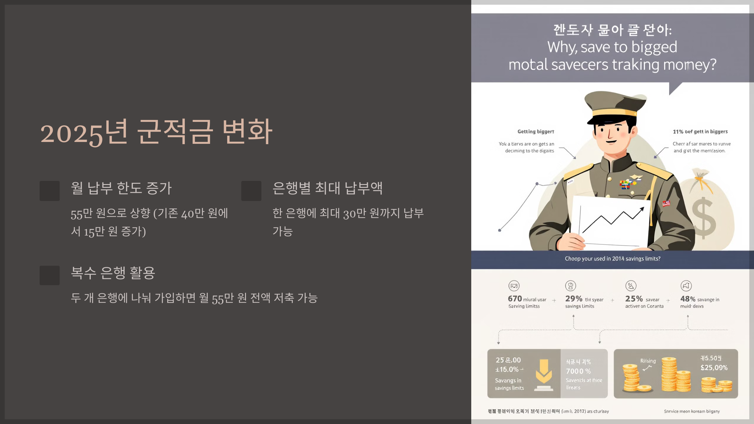 군적금 인상 계산 만기 해지 은행별 포스팅입니다. 군 복무 중 가장 설레는 순간 중 하나가 바로 군적금 만기 해지 아닐까요? 저도 복무 중 매달 적금을 넣으며 전역 후 계획을 세웠던 기억이 납니다. 특히 올해부터는 군적금 납부 한도가 상향되면서 더 많은 혜택을 받을 수 있게 되었죠. 제 경험을 바탕으로, 군적금을 최대한 활용할 수 있는 방법과 최신 정보를 정리해 드리겠습니다.