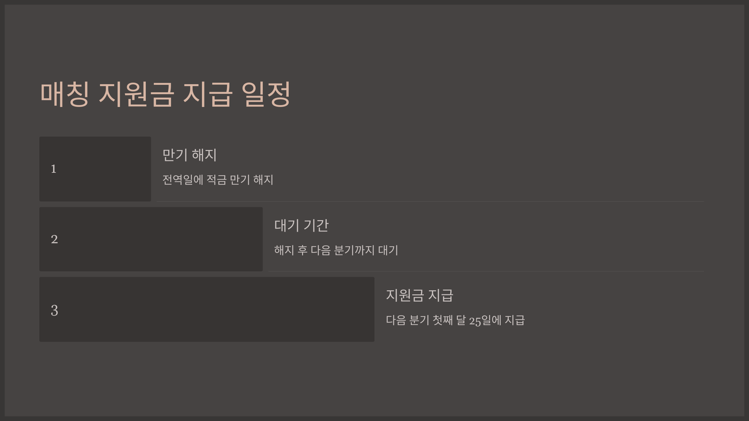 • Q: 매칭 지원금은 언제 받을 수 있나요?