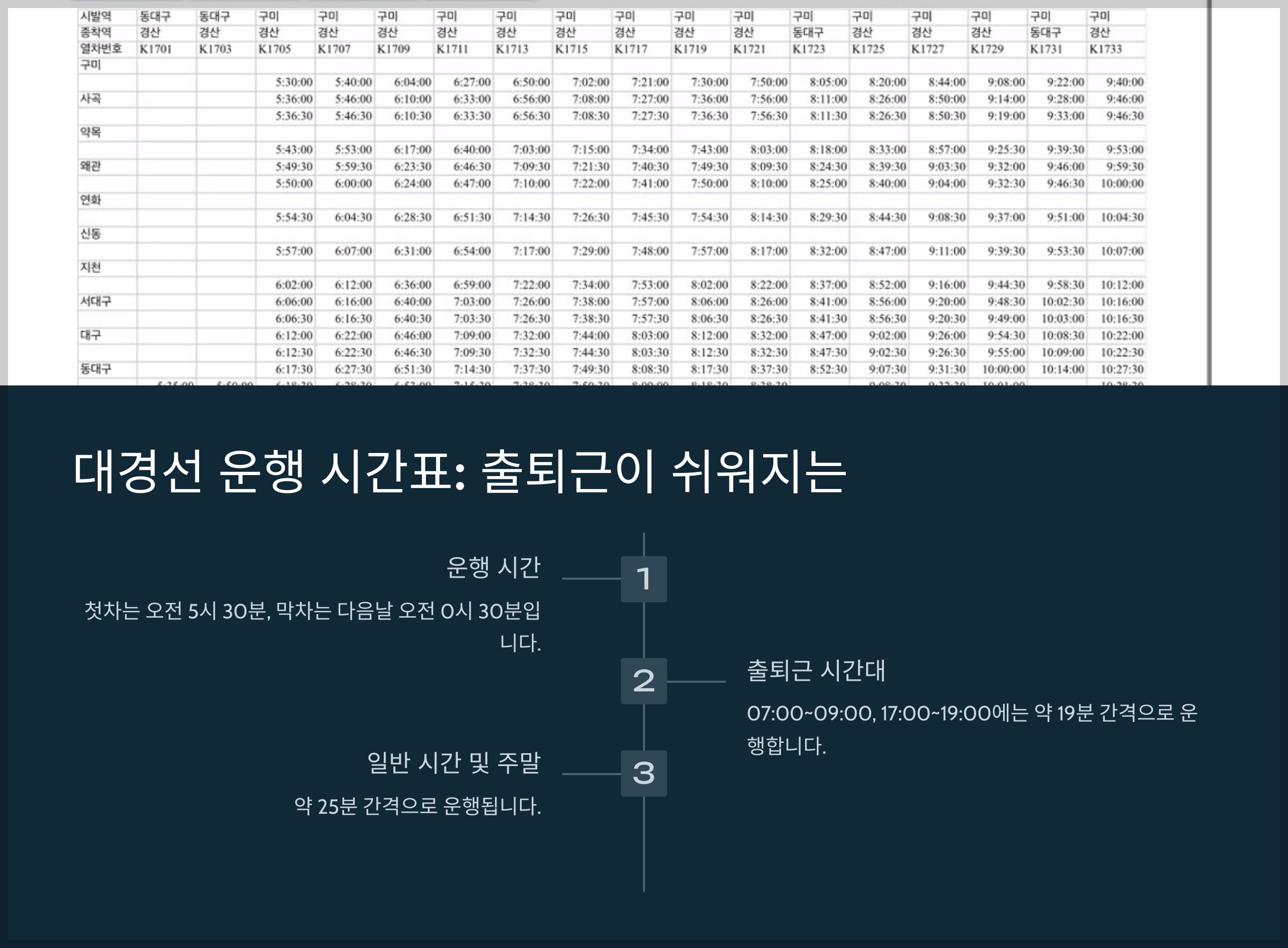 🕰️ 대경선 운행 시간표: 출퇴근이 쉬워지는 광역철도