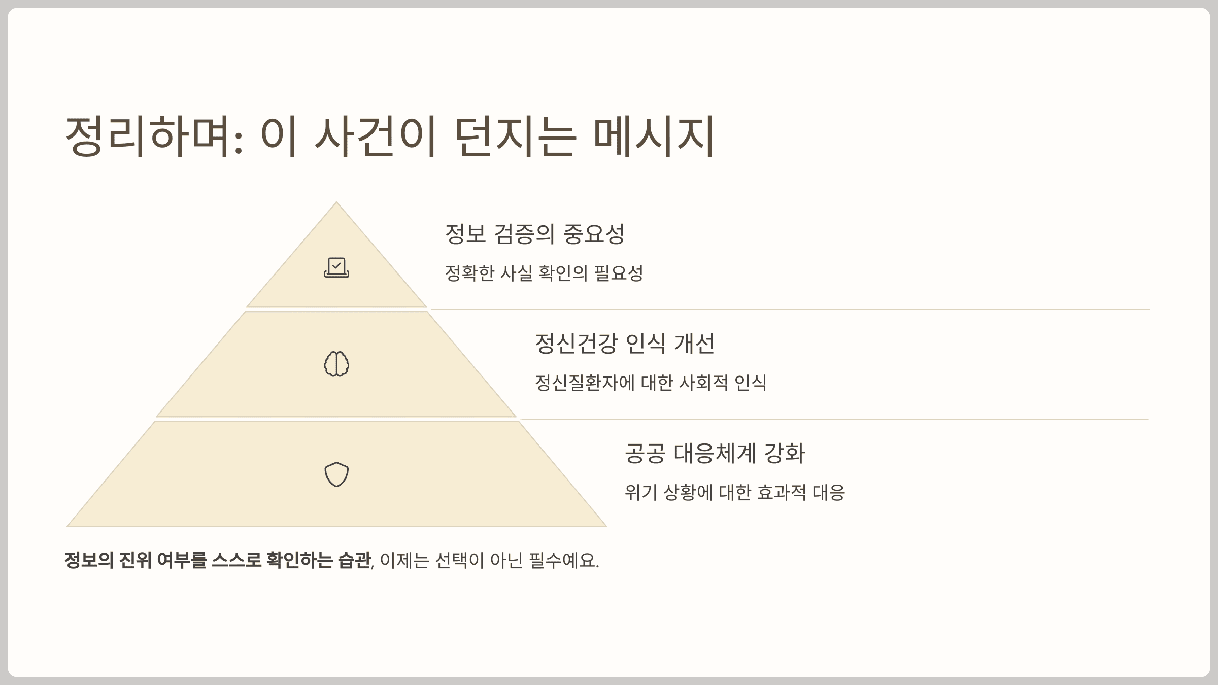 정확한 사실 확인 없이 퍼지는 정보는 한 개인뿐 아니라, 사회 전체에 영향을 미칠 수 있다는 점을 분명히 보여준 사례였죠.