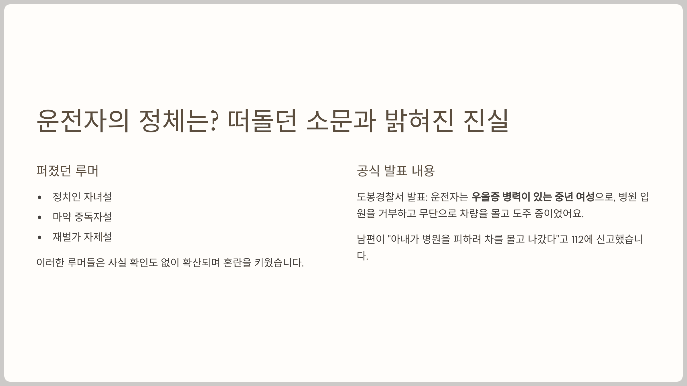 👤 운전자의 정체는? 떠돌던 소문과 밝혀진 진실