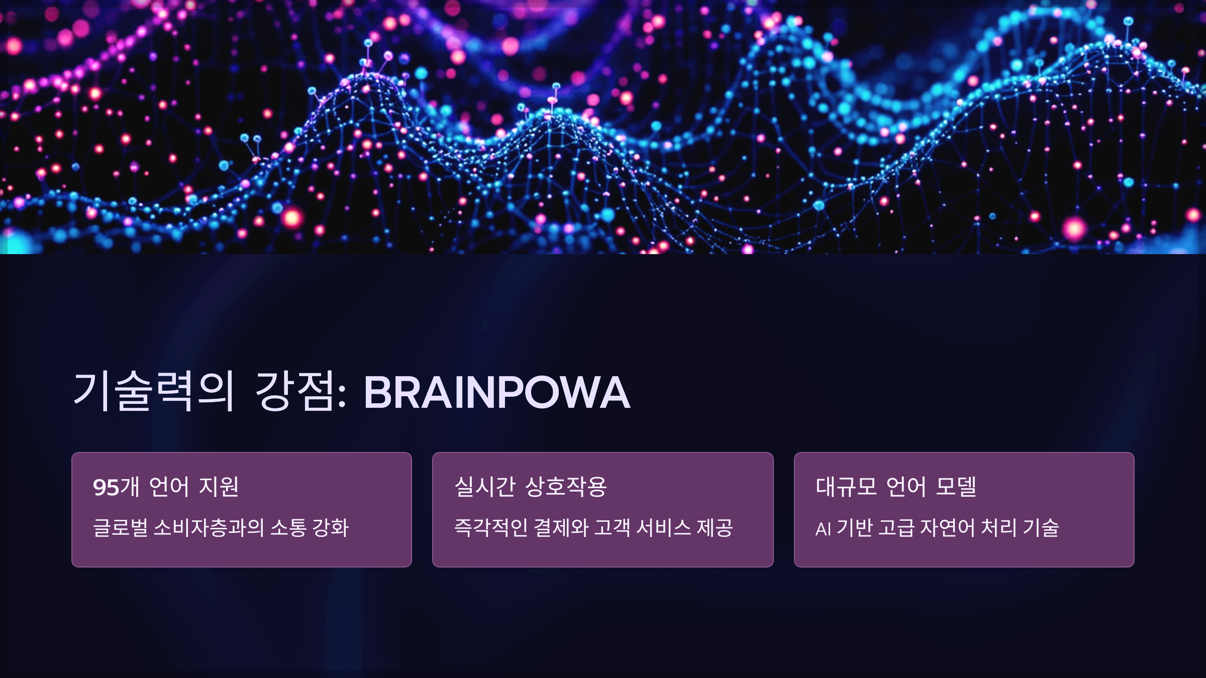 디졸브 AI의 핵심 경쟁력은 자사가 개발한 대규모 언어 모델(LLM) BRAINPOWA입니다. 이 모델은 95개 언어를 지원하며, 소비자와의 실시간 상호작용을 통해 즉각적인 결제와 고객 서비스를 제공합니다.
