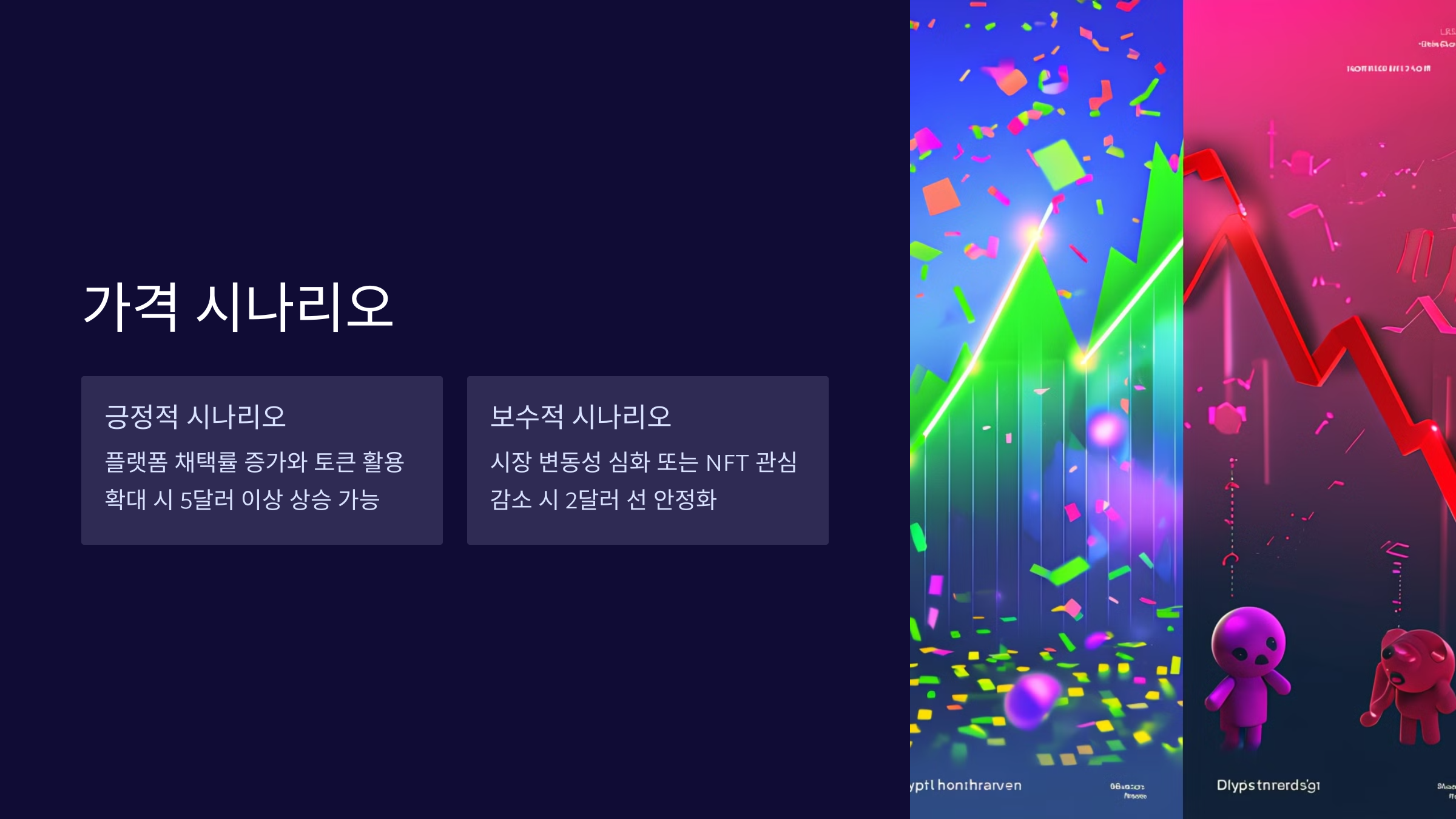 반면, 시장 변동성이 심하거나 NFT 시장의 관심이 줄어들 경우, 2달러 선에서 안정화될 가능성도 있습니다. 가격은 프로젝트의 생태계 발전 속도와 시장 상황에 크게 좌우됩니다.
