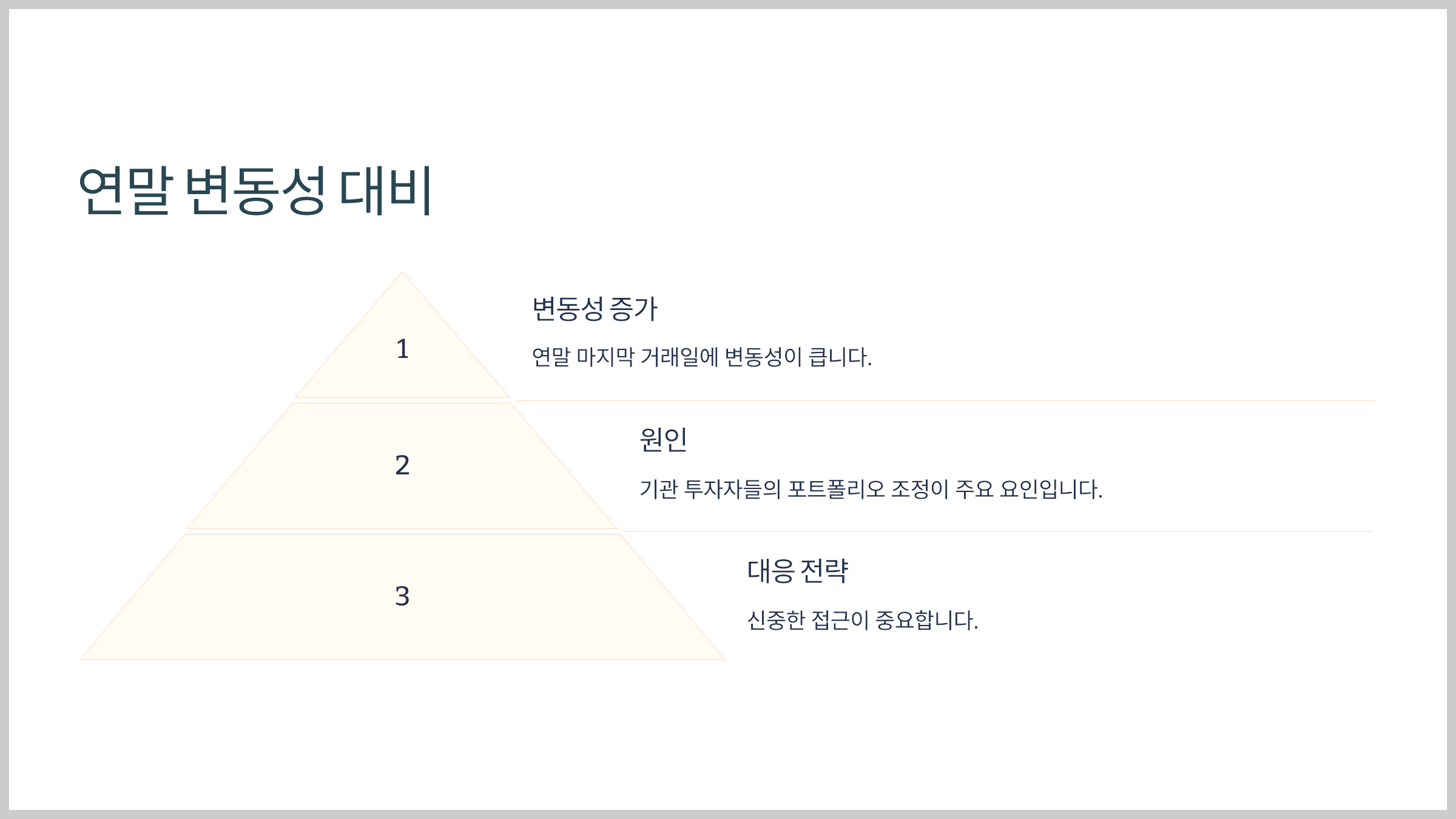 제가 경험한 바로는 연말 마지막 거래일에 변동성이 크다는 점입니다. 기관 투자자들의 포트폴리오 조정으로 주가가 예상치 못하게 움직일 수 있으니 신중히 대응하는 것이 중요합니다.
