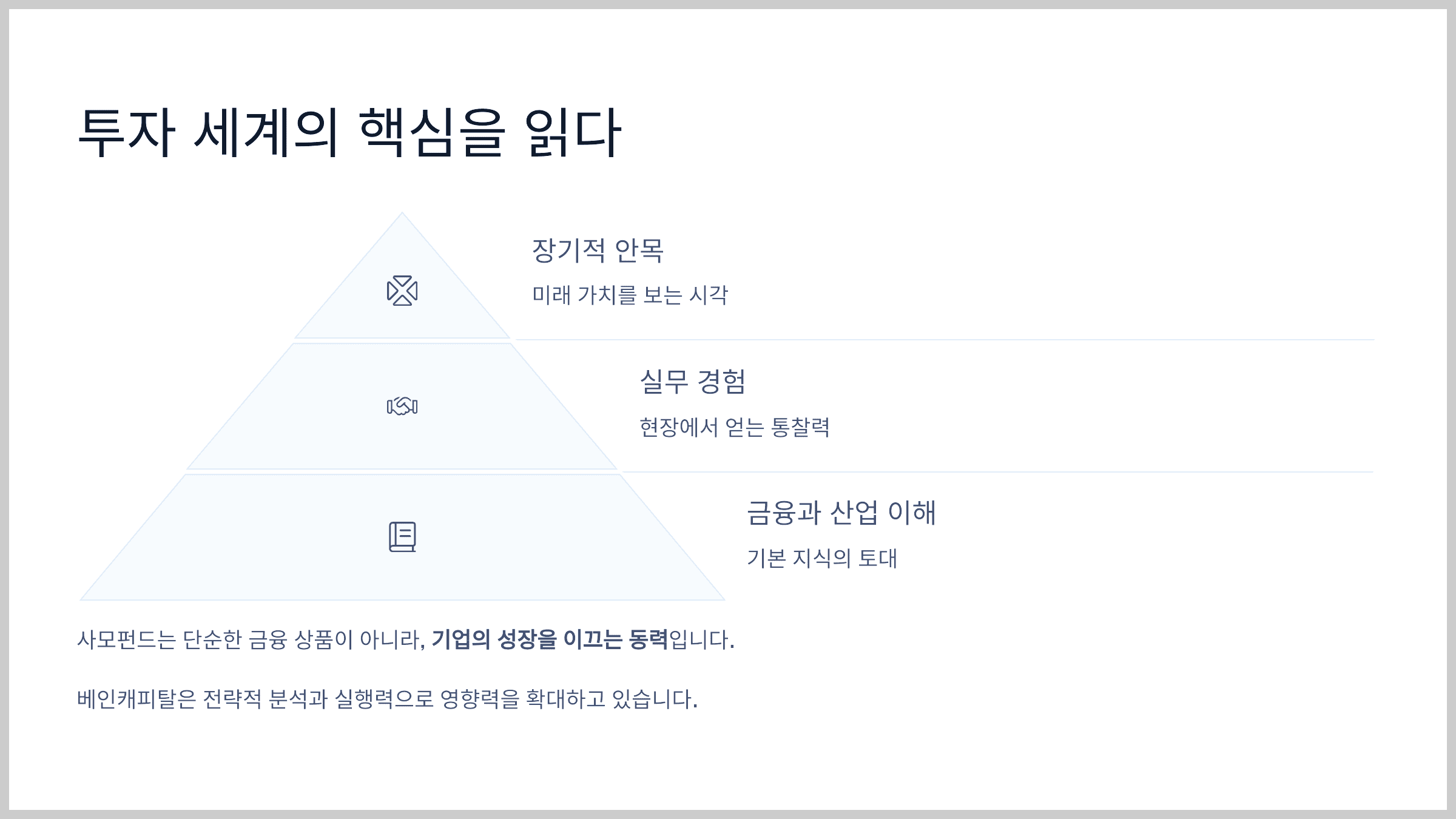 사모펀드가 정확히 무엇인지, 왜 베인캐피탈이 국내 시장에서 주목받는지, 그리고 김현승 전무는 어떤 길을 걸어왔는지를 알아보며 투자 전문가의 세계를 함께 살펴보겠습니다.