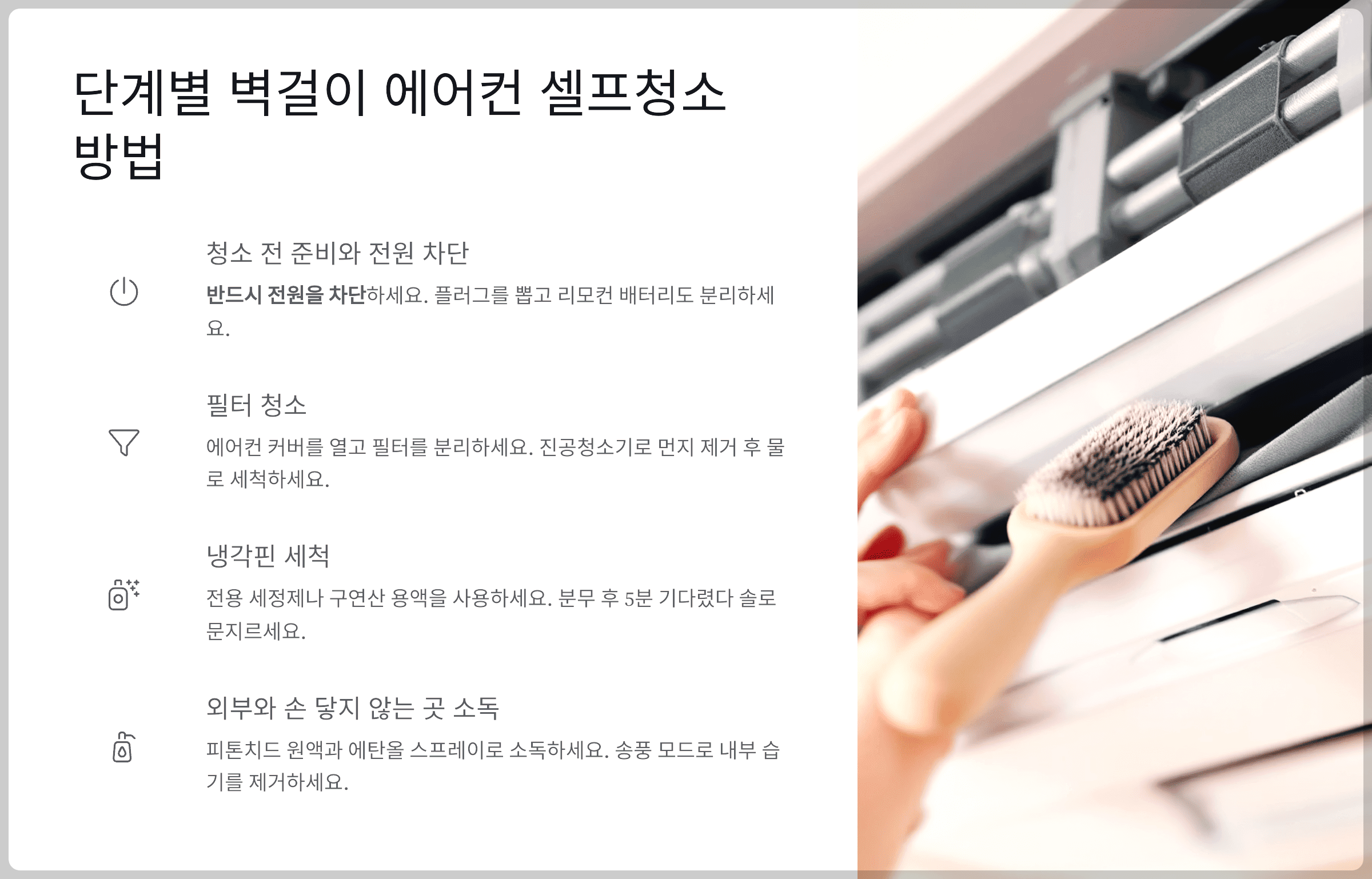 🧼 본론: 단계별 벽걸이 에어컨 셀프청소 방법