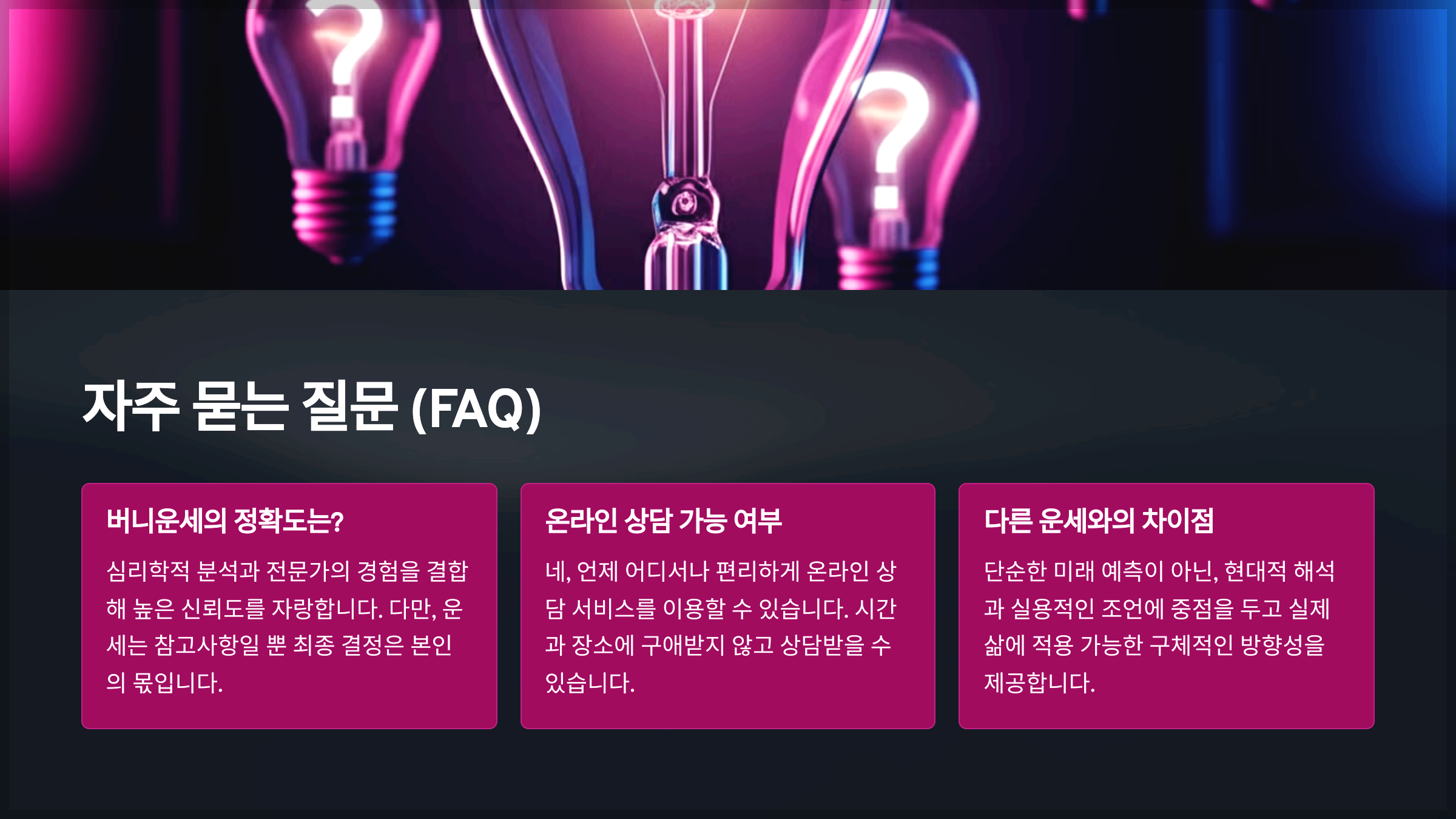 - Q: 버니운세는 다른 운세 서비스와 어떻게 다른가요?