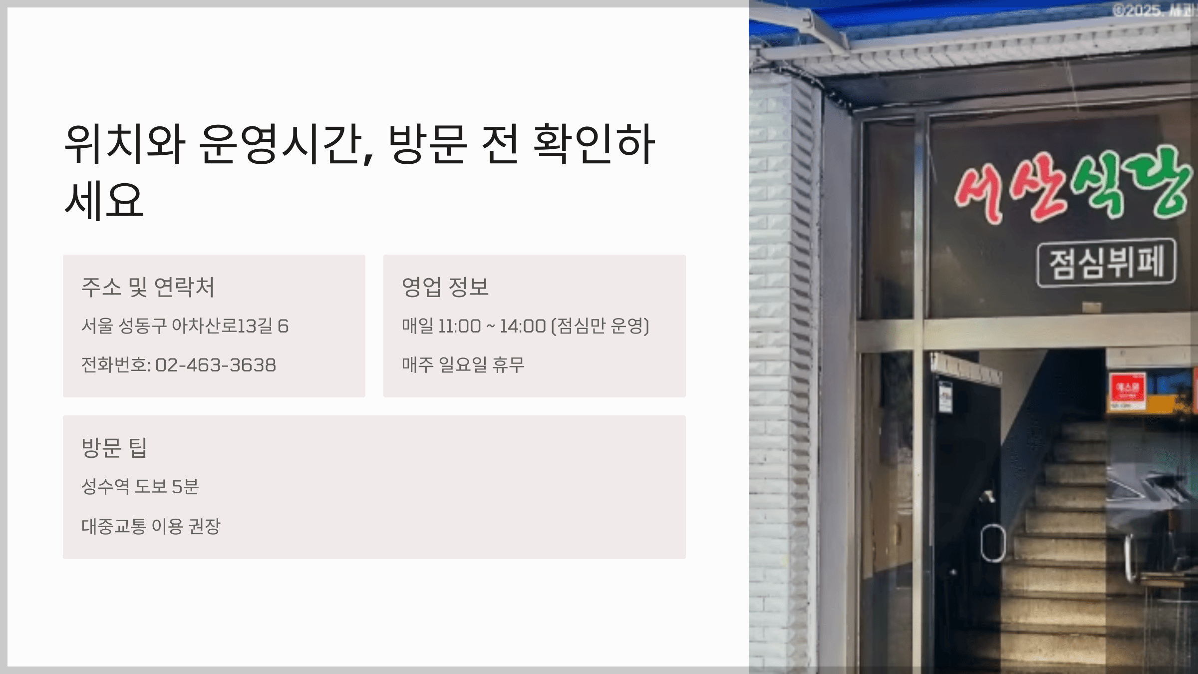 🗺️ 위치와 운영시간, 방문 전 확인하세요