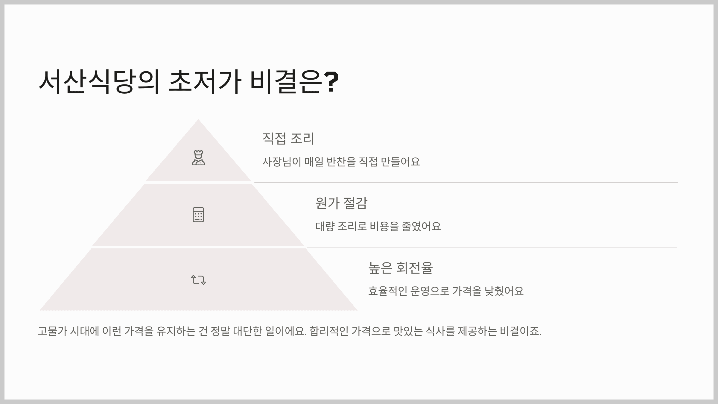 요즘 같은 고물가 시대에 이런 가격을 유지하는 건 정말 대단한 일이죠.