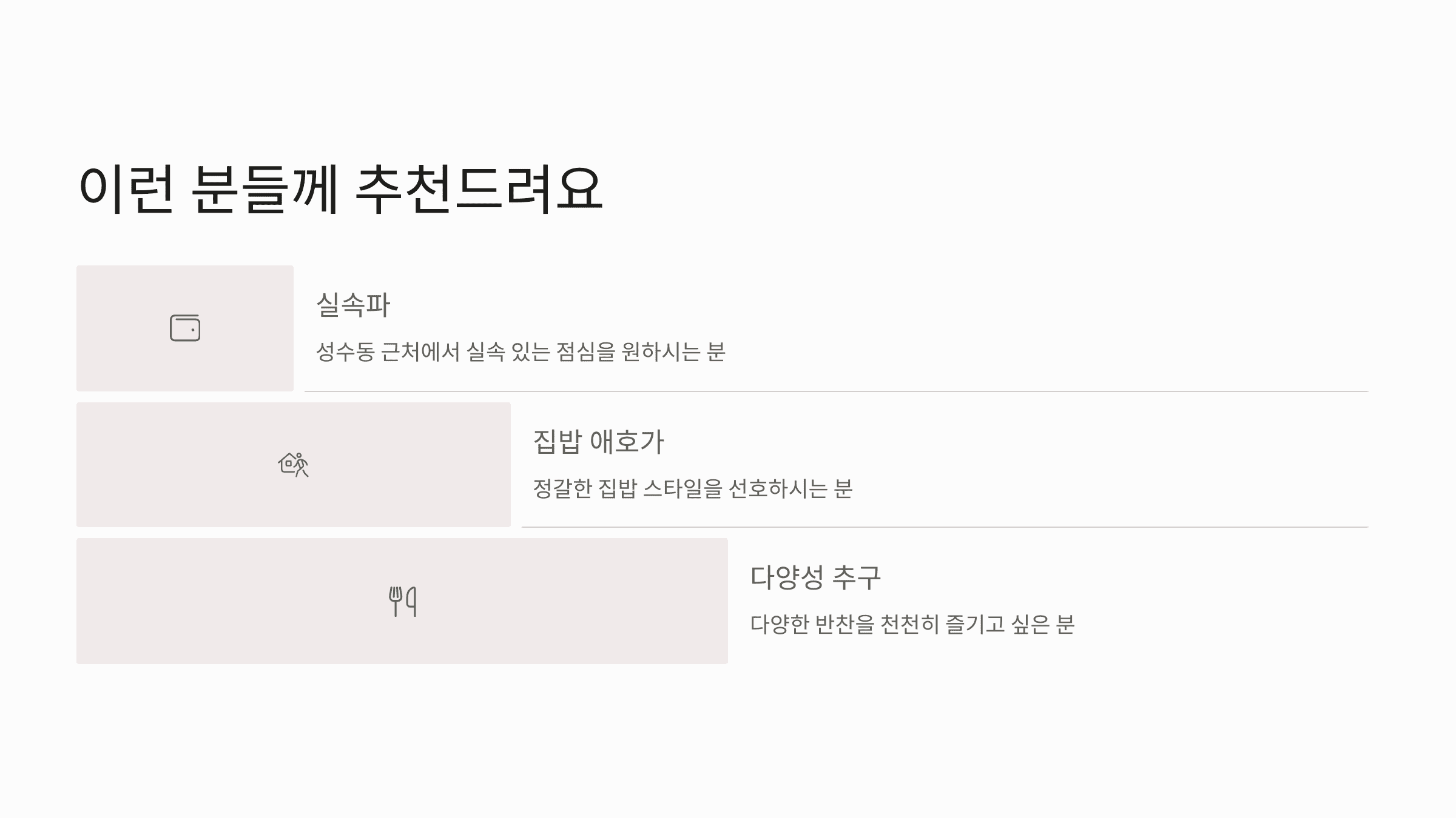 - 자극적이지 않고 집밥 같은 정갈한 맛