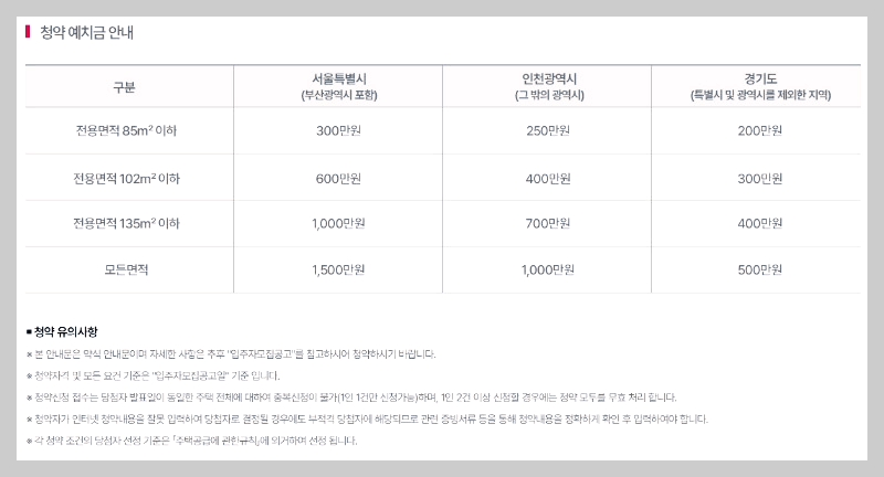 청약 통장의 예치금 역시 전용면적에 따라 다르므로, 자신의 청약통장이 해당 요건을 충족하는지 사전에 확인하는 것이 중요합니다. 예를 들어, 서울 지역에서 전용 85㎡ 이하에 청약을 하려면 예치금이 최소 1,500만 원이 필요합니다. 저도 청약 준비 과정에서 예치금액을 맞추는 것에 신경을 많이 썼는데, 미리 준비해 두면 청약 기회를 놓치지 않을 수 있습니다.