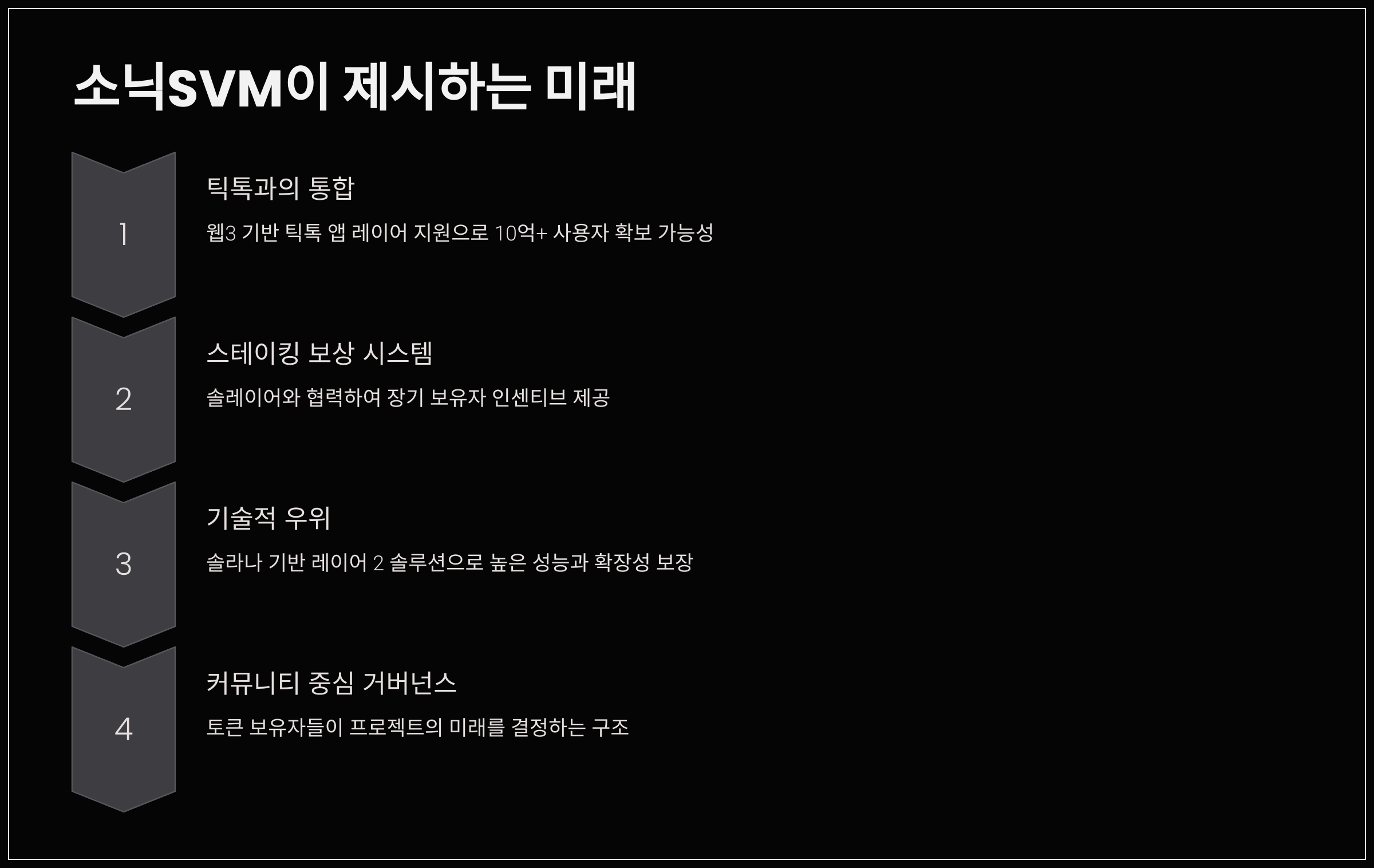 소닉SVM은 게임파이 시장에서 독보적인 위치를 차지할 가능성이 큽니다. 특히 다음과 같은 요소들이 프로젝트의 성장 가능성을 뒷받침하고 있습니다.