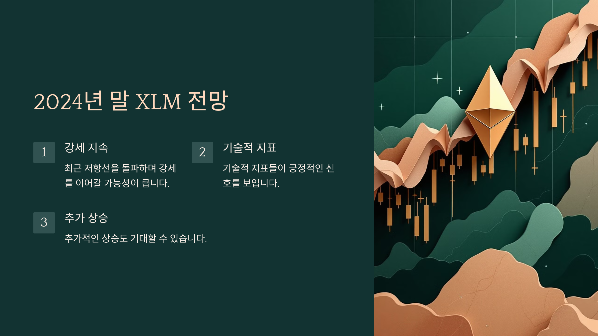 2024년 말까지 XLM은 최근 저항선을 돌파하며 강세를 이어갈 가능성이 큽니다. 기술적 지표들이 긍정적인 신호를 보이며, 추가적인 상승도 기대할 수 있습니다.