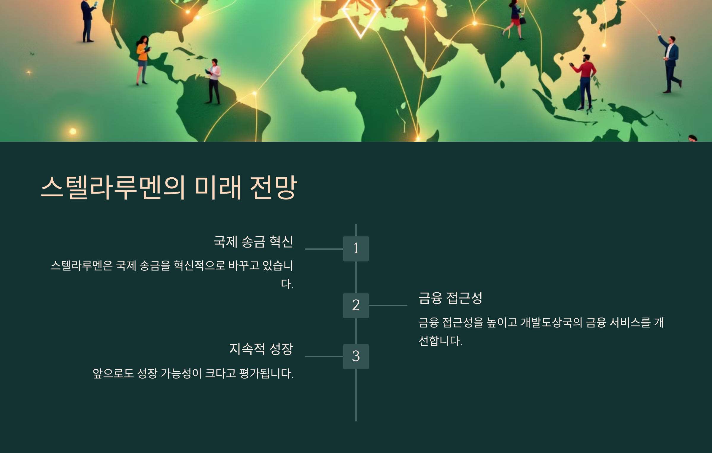 스텔라루멘은 국제 송금을 혁신적으로 바꾸고 있는 암호화폐로서, 앞으로도 성장 가능성이 크다고 평가됩니다. 빠르고 저렴한 거래 구조는 금융 접근성을 높이고, 특히 개발도상국에서의 금융 서비스 개선에 이바지하고 있습니다. 그러나 암호화폐 투자에는 항상 변동성에 따른 위험이 수반되므로 충분한 조사와 신중한 결정을 통해 접근하는 것이 중요합니다.
