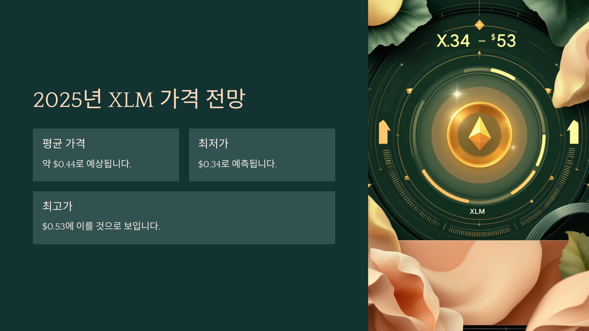 2025년 전망으로는 평균 가격이 약 0.44로 예상되며, 최저가는 0.44로 예상되며, 최저가는 0.34, 최고가는 $0.53에 이를 것으로 보입니다. 스텔라의 기술적 발전과 파트너십 확장은 XLM의 유동성을 높여 더 많은 금융 기관의 참여를 끌어낼 것입니다.