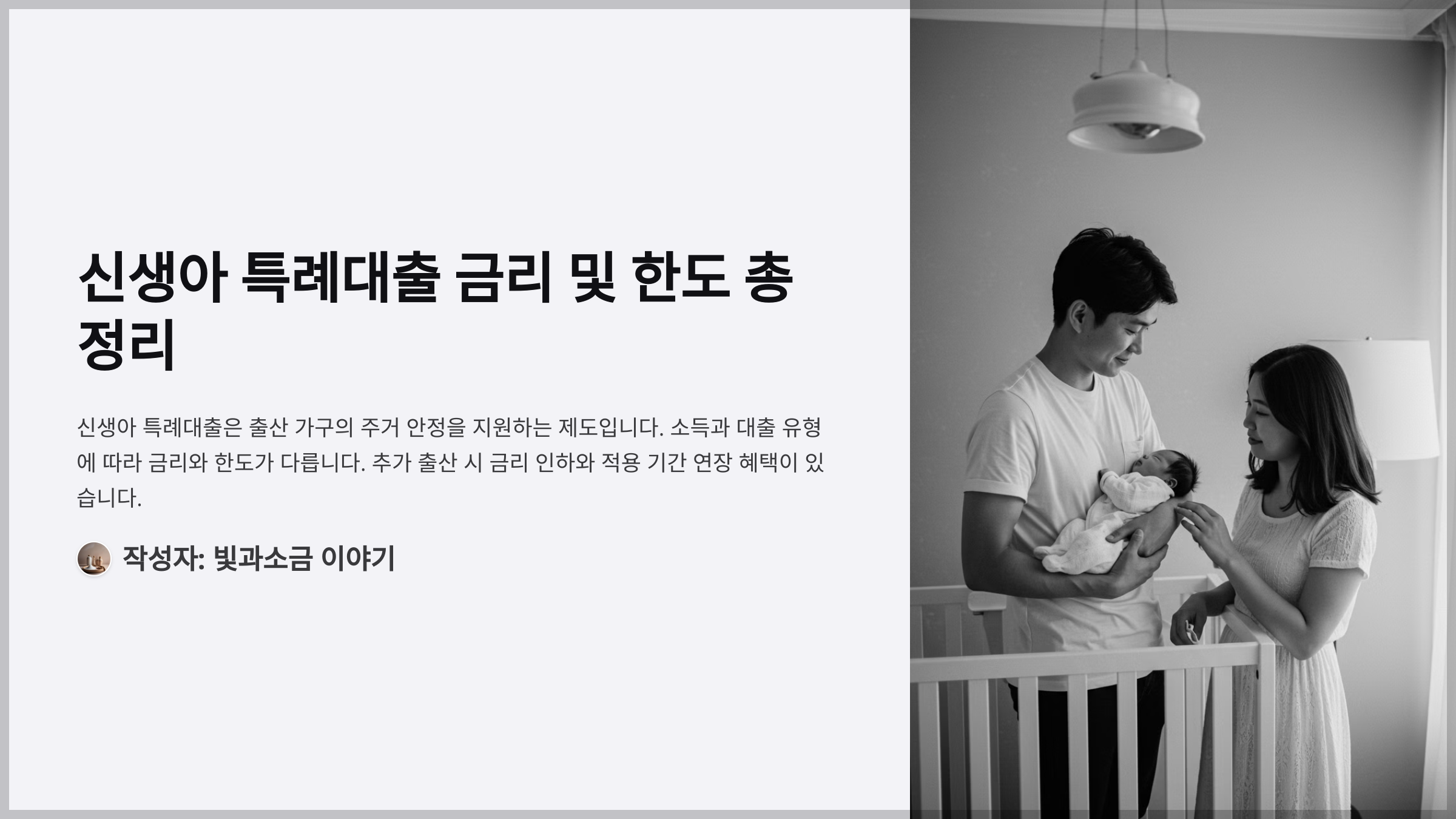 신생아를 키우며 경제적 부담을 느끼는 가정이라면, 정부의 신생아 특례대출이 좋은 해결책이 될 수 있습니다. 예상치 못한 지출과 늘어나는 생활비는 많은 부모에게 큰 고민거리가 되곤 합니