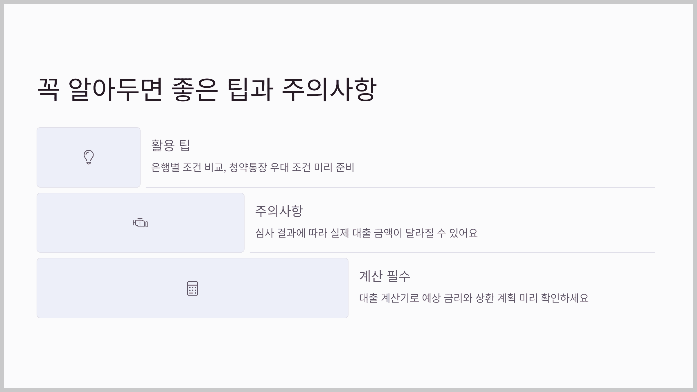 • 은행별 조건 비교는 필수