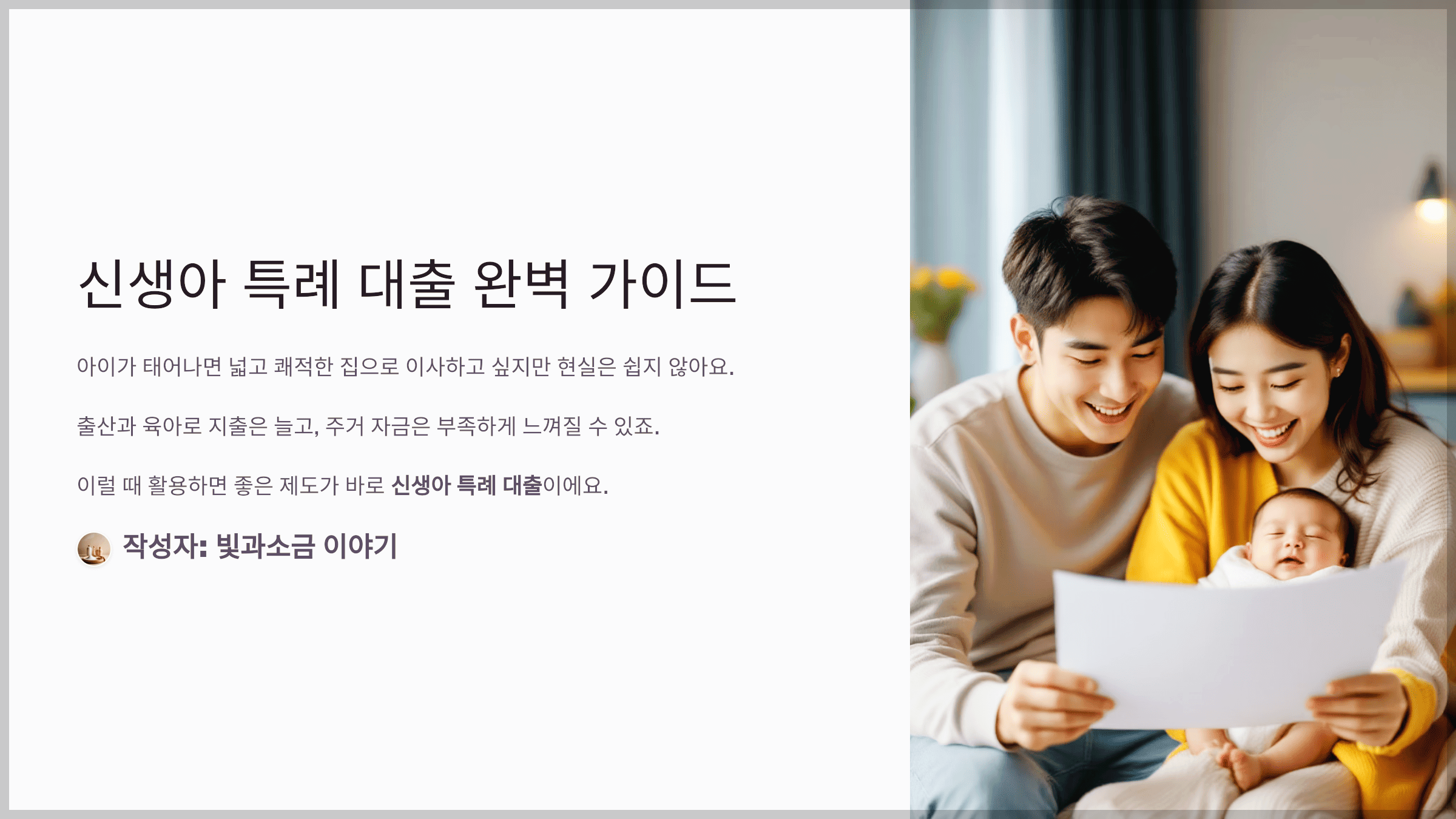 신생아 특례 대출 완벽 가이드입니다. 아이가 태어나면 지금보다 넓고 쾌적한 집으로 이사하고 싶다는 생각이 들 수 있어요. 하지만 현실은 쉽지 않죠. 출산과 육아로 지출은 늘고, 전세나 내 집 마련을 위한 자금은 턱없이 부족하다고 느껴질 수 있어요.
