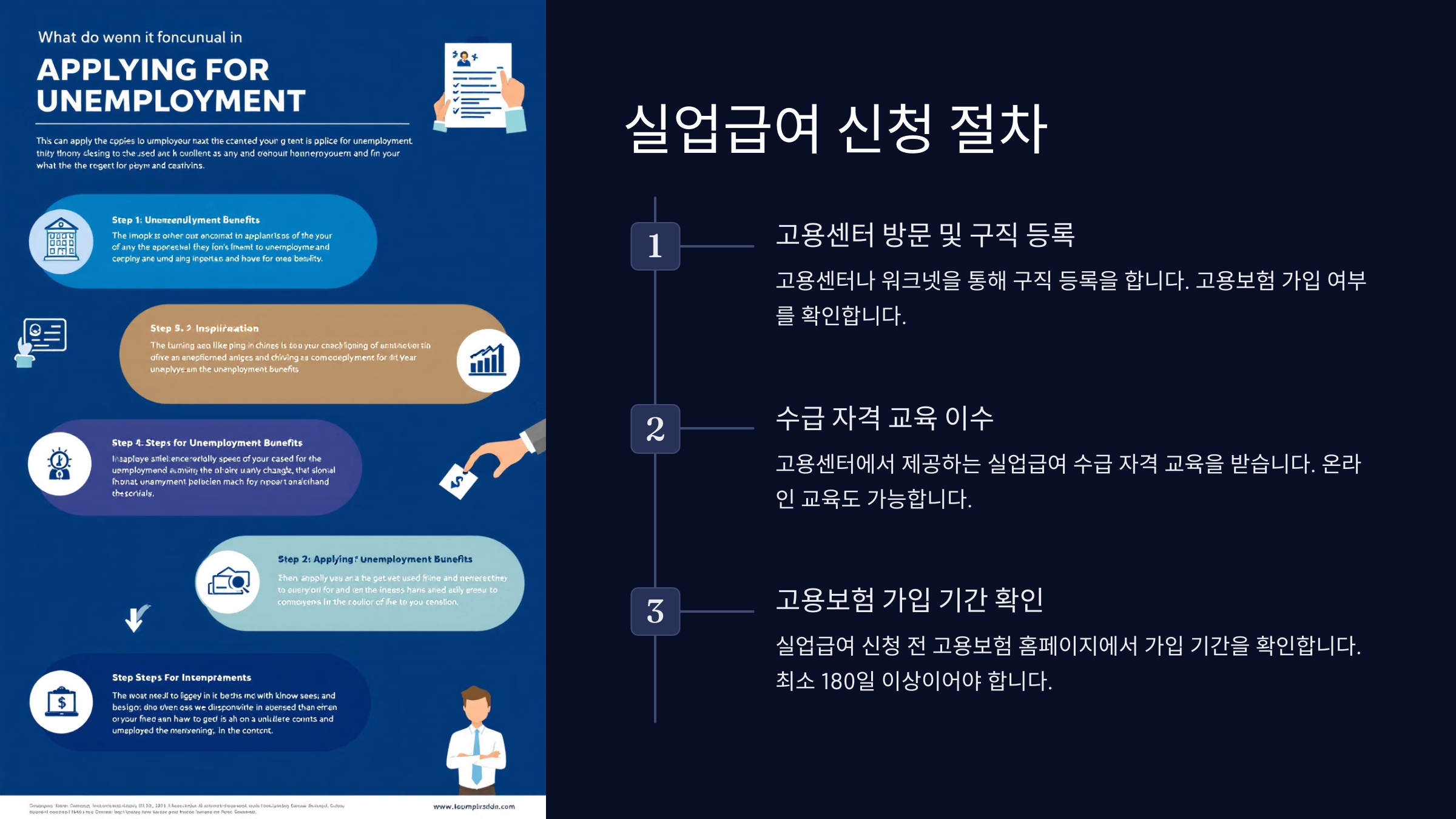 실업급여를 신청하기 위해서는 두 가지 주요 단계를 거쳐야 합니다.