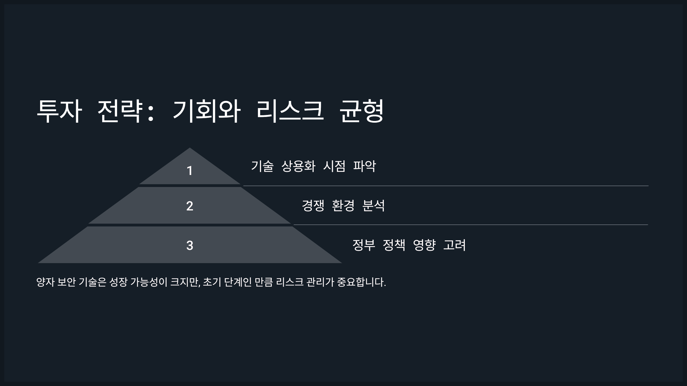 양자 보안 기술은 성장 가능성이 크지만, 초기 단계인 만큼 리스크 관리가 중요합니다. 실SQ에 투자하기 전에