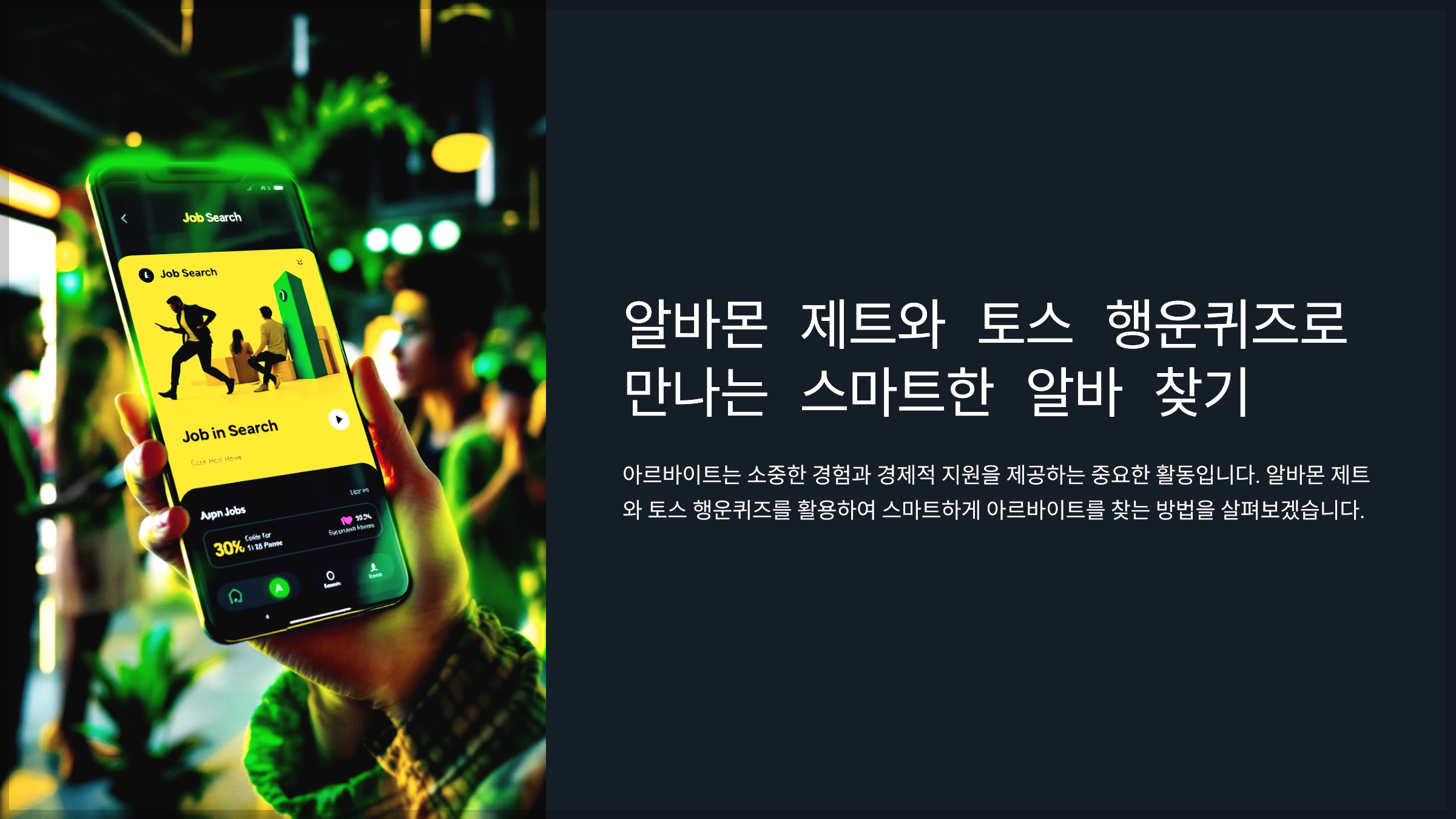 알바몬 제트와 토스 행운퀴즈로 만나는 스마트한 알바 찾기입니다. 아르바이트는 많은 이들에게 소중한 경험과 함께 경제적 지원을 제공하는 중요한 활동입니다. 특히 학생이나 젊은 직장인들에게는 학업과 일을 병행하며 다양한 기술과 인맥을 쌓을 기회가 되기도 합니다. 하지만 아르바이트를 찾는 과정은 때때로 복잡하고 힘든 여정이 될 수 있습니다. 이러한 고민을 덜어주기 위해 알바몬 제트가 등장했습니다. 이 서비스는 지역 기반의 맞춤형 알바 매칭 기능을 통해 구직자들이 더 쉽게 원하는 일자리를 찾을 수 있도록 돕습니다. 여기에 토스 행운퀴즈를 더하면, 단순한 구직 활동을 넘어 재미와 보상을 동시에 누릴 기회를 제공합니다. 이번 글에서는 알바몬 제트와 토스 행운 퀴즈를 활용하여 스마트하게 아르바이트를 찾는 방법을 살펴보고, 이를 통해 얻은 유용한 팁과 경험을 나누고자 합니다.