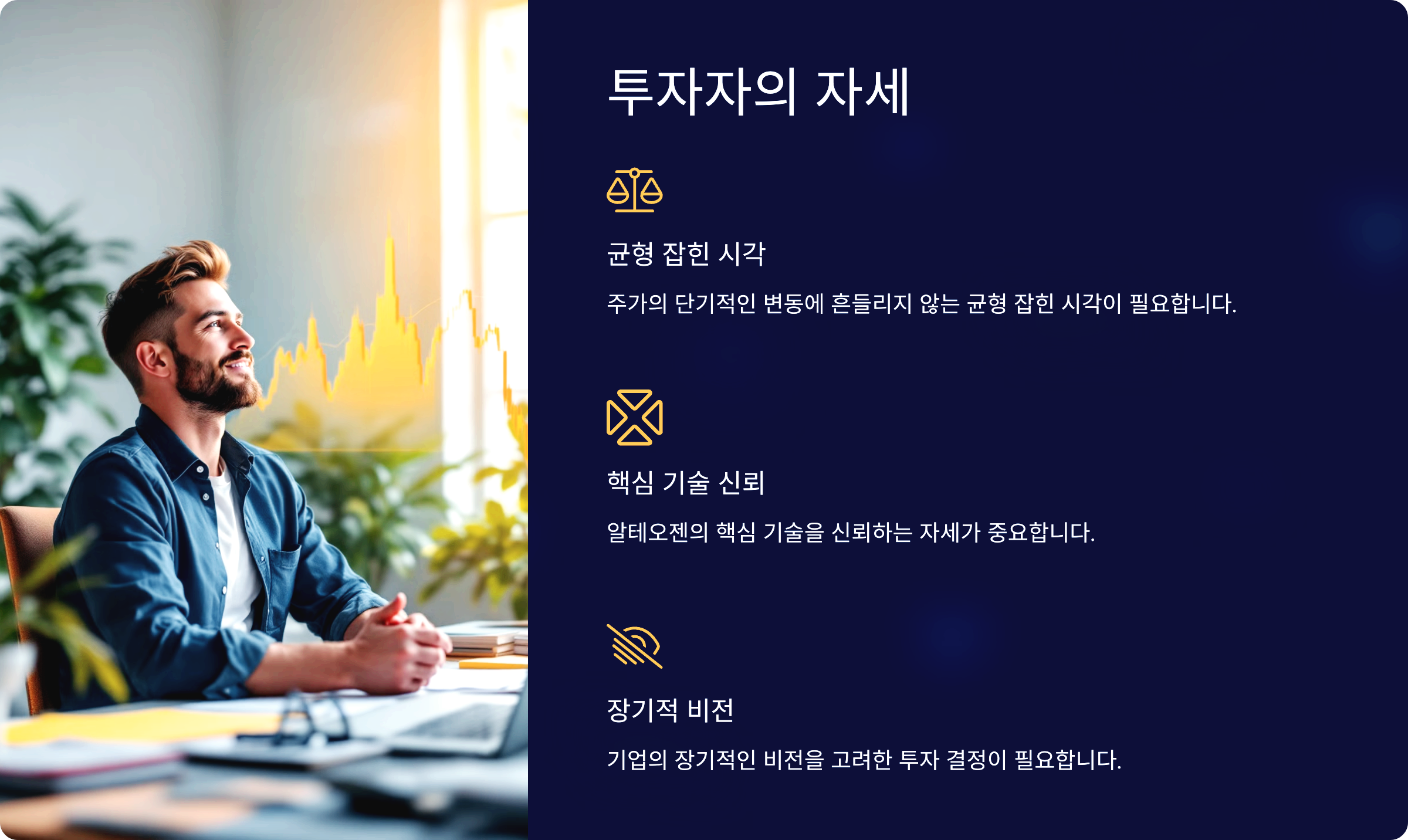 결론적으로, 현재의 주가 하락이 반드시 알테오젠의 근본적인 문제를 의미하지는 않습니다. 오히려 이런 시기에 기업의 기본 가치와 미래의 성장 가능성을 다시 한번 점검해 보고, 장기적인 관점에서 투자 판단을 내리는 것이 필요합니다. 주가의 단기적인 변동에 흔들리지 않고, 핵심 기술과 장기적인 비전을 신뢰하는 자세가 필요한 시점입니다.