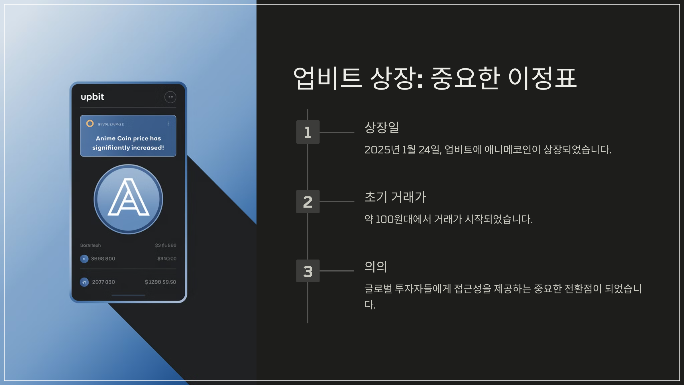 업비트 상장은 애니메 코인의 인지도를 높이고, 글로벌 투자자들에게 접근성을 제공하는 중요한 전환점이 되었다.