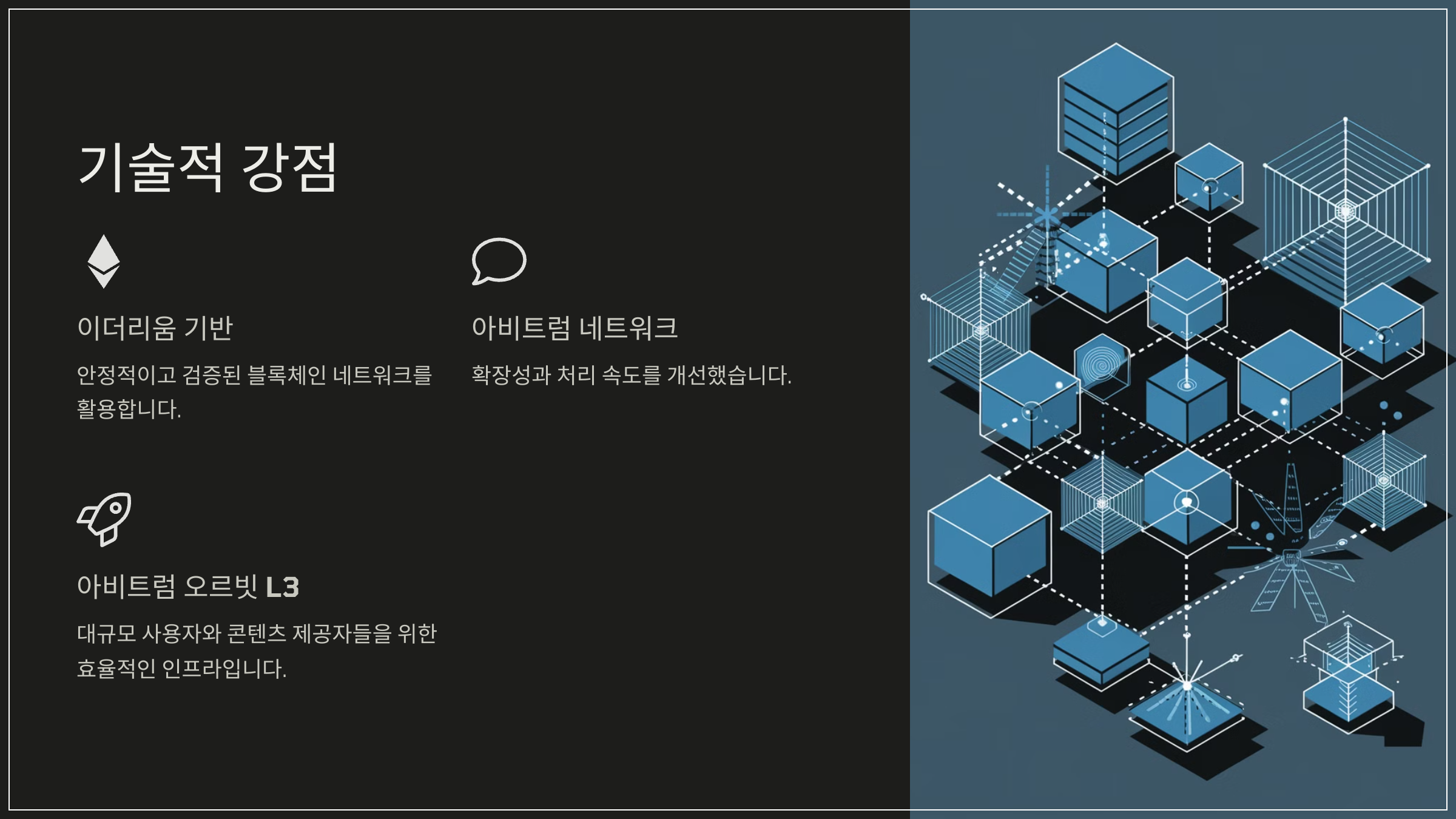 애니메코인은 이더리움과 아비트럼 네트워크를 기반으로 구축되었다. 특히, 아비트럼 오르빗 L3 기술을 활용하여 확장성과 처리 속도를 대폭 개선했다.