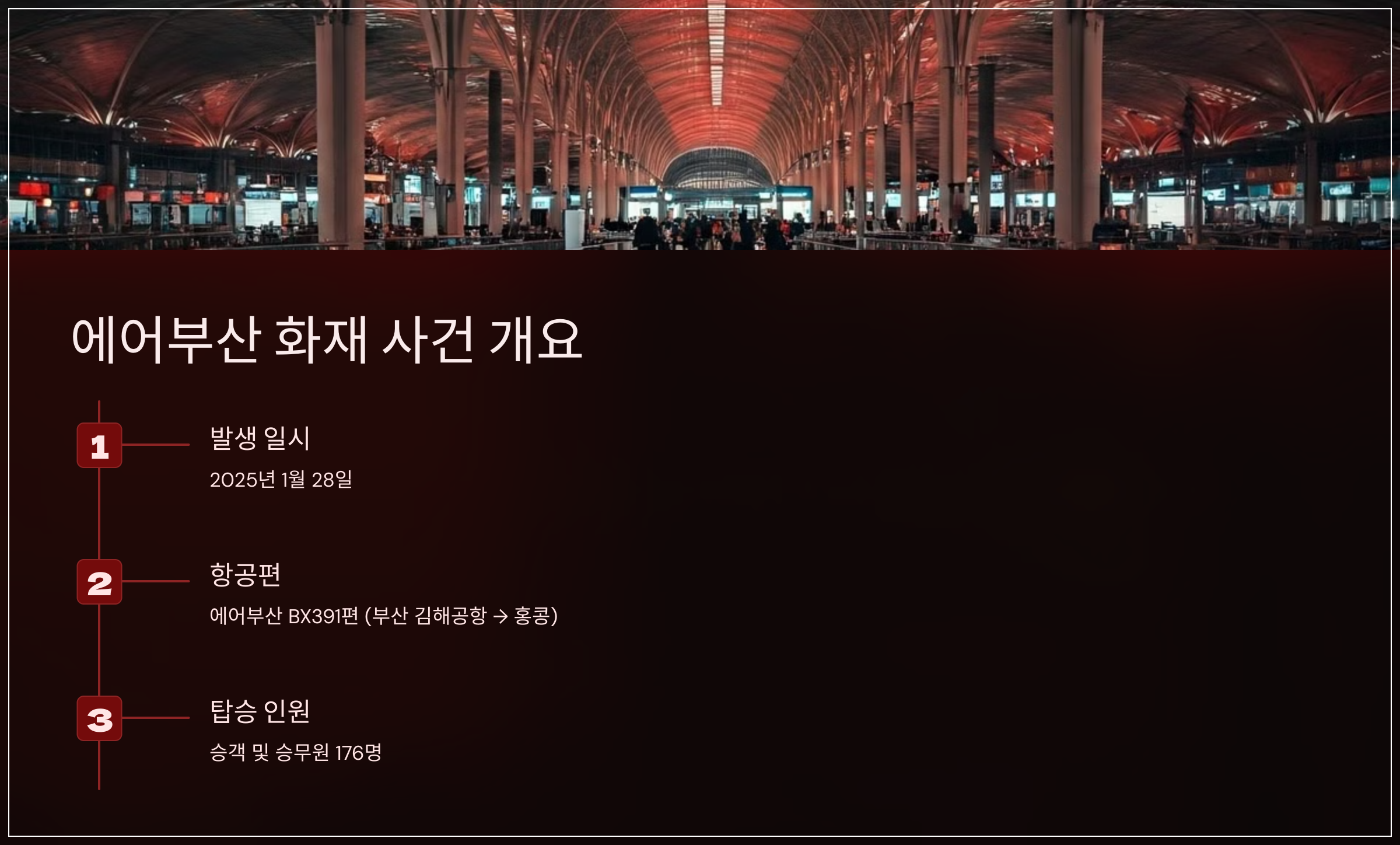 항공기를 이용할 때 가장 중요한 것은 안전이다. 하지만 최근 발생한 에어부산 BX391편 화재 사고는 기내 화재의 위험성을 다시금 일깨워주었다. 예상치 못한 비상 상황에서는 신속한 판단과 대처가 생명을 좌우할 수 있다. 이번 글에서는 화재 원인과 탑승자 증언을 바탕으로 유사한 상황에서 어떻게 행동해야 할지를 알아본다.