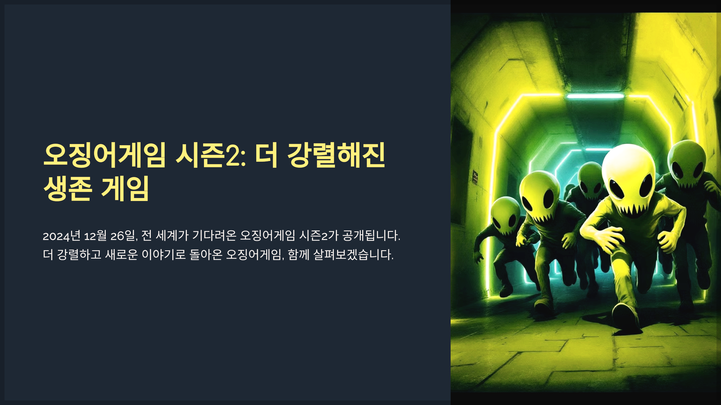 오징어게임 시즌2 소식을 듣고부터 가슴이 두근거렸습니다. 시즌1이 주었던 긴장감과 몰입감이 아직도 생생한데, 이번 시즌은 더 새롭고 강렬한 이야기로 돌아온다고 하니, 어떻게 기다릴 수 있을까요? 시즌2는 2024년 12월 26일에 공개됩니다. 전 세계 팬들과 함께 다시 서바이벌 게임의 세계로 빠져들 준비가 되어 있습니다.
