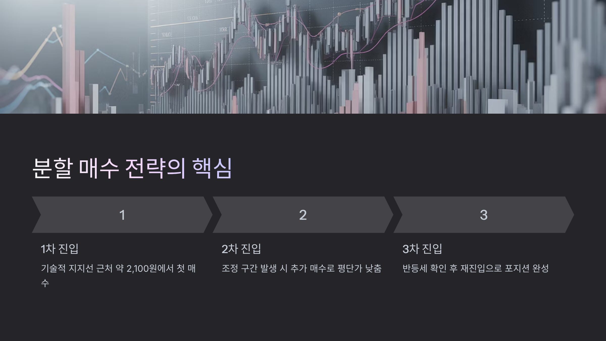 - 1차: 기술적 지지선 근처 (약 2,100원)