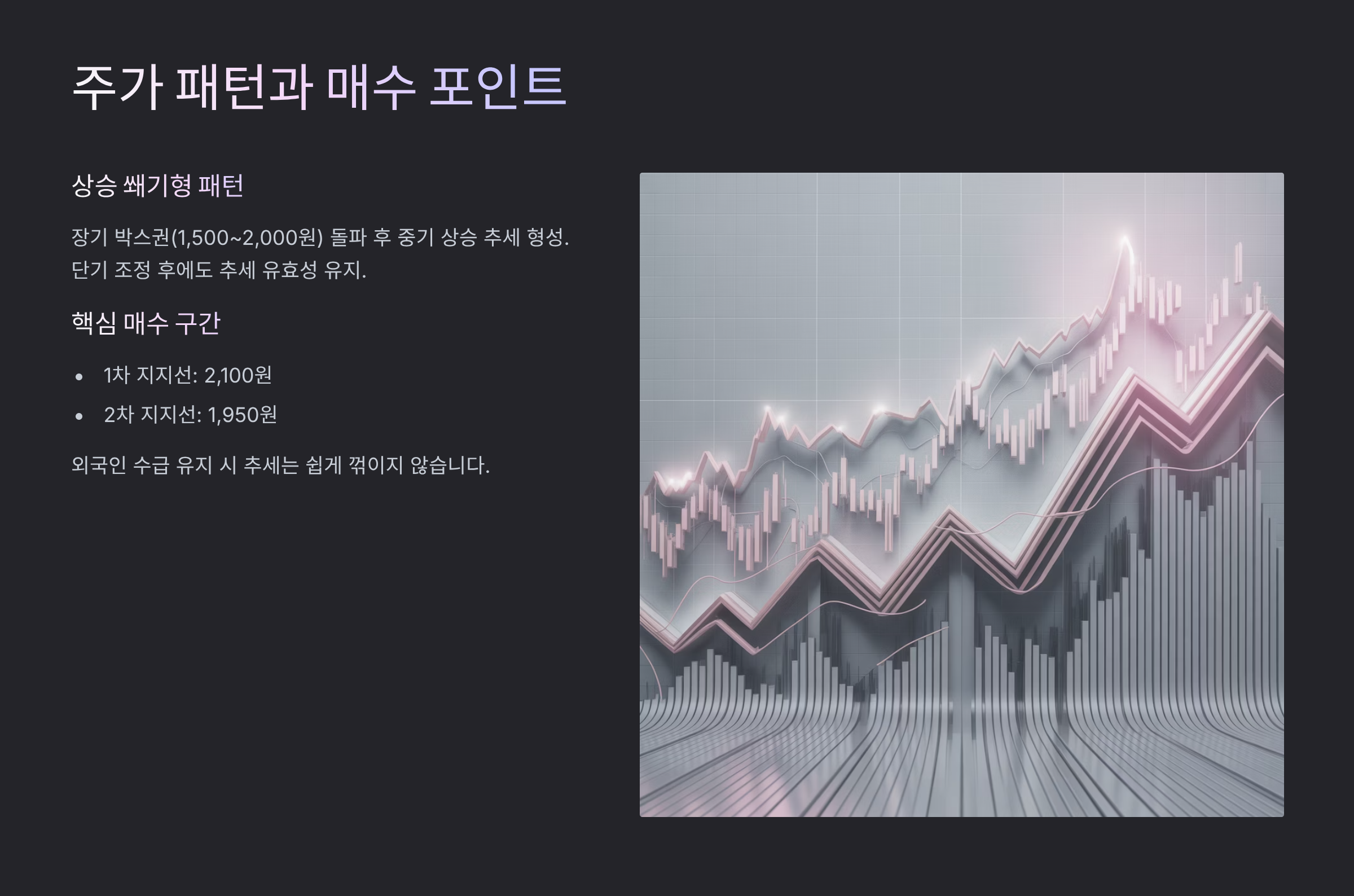 - 2차 지지선: 1,950원 (거래량 집중 매물대)