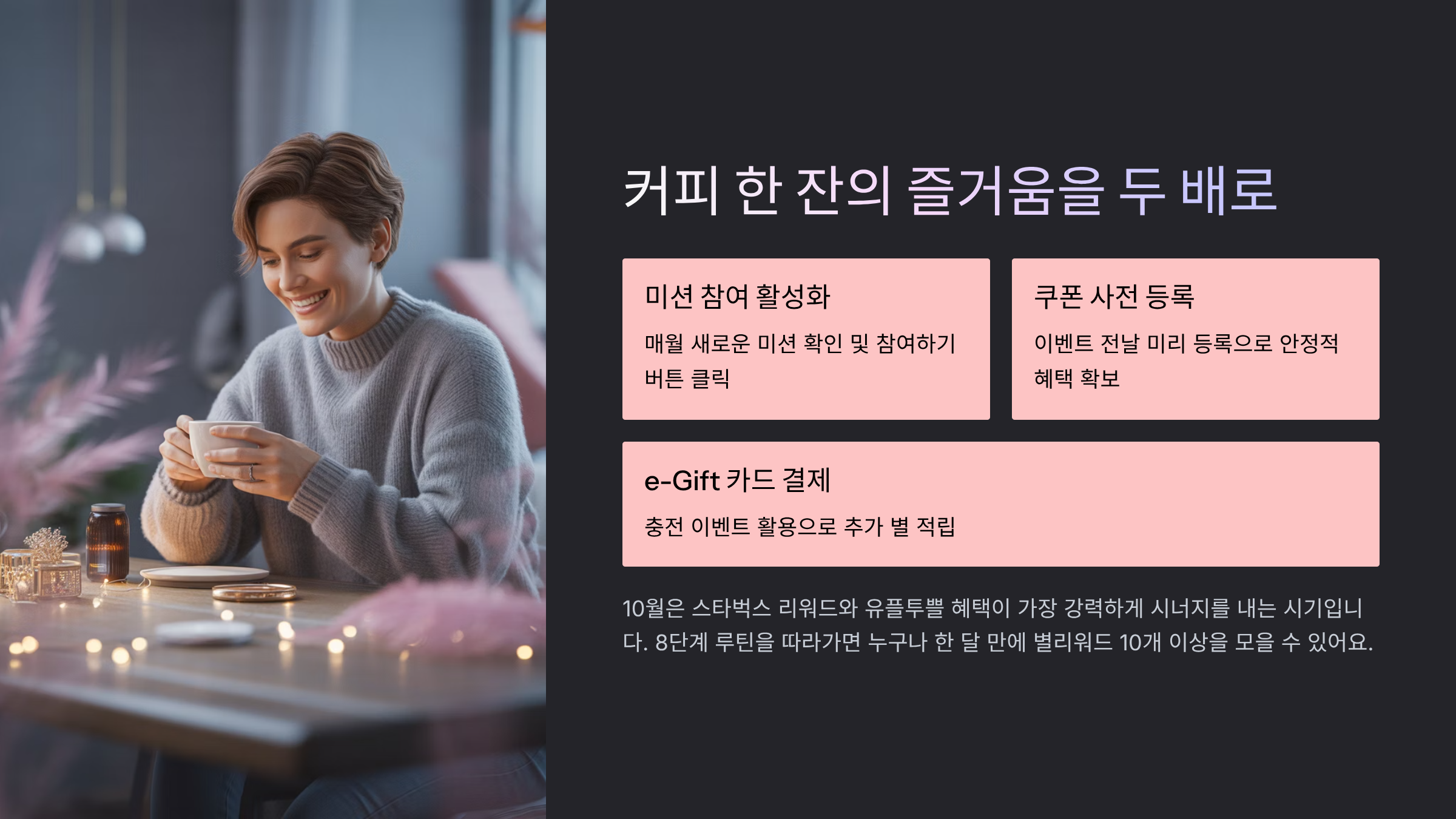 이제 커피 한 잔도 전략적으로 즐겨보세요 ☕✨