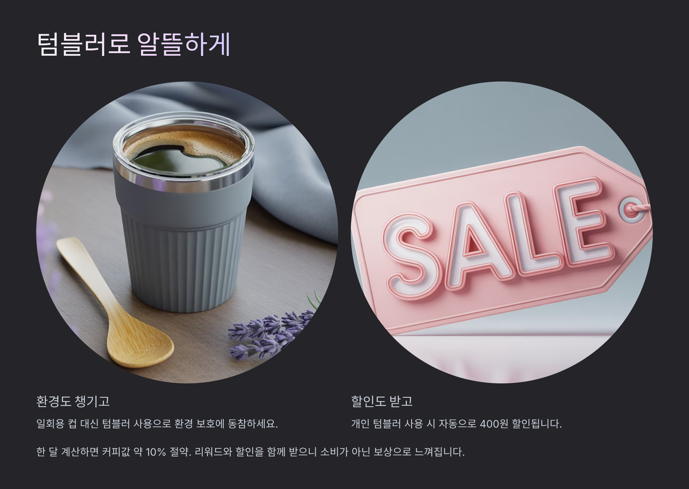 - 🥤 개인 텀블러 사용 시 400원 자동 할인