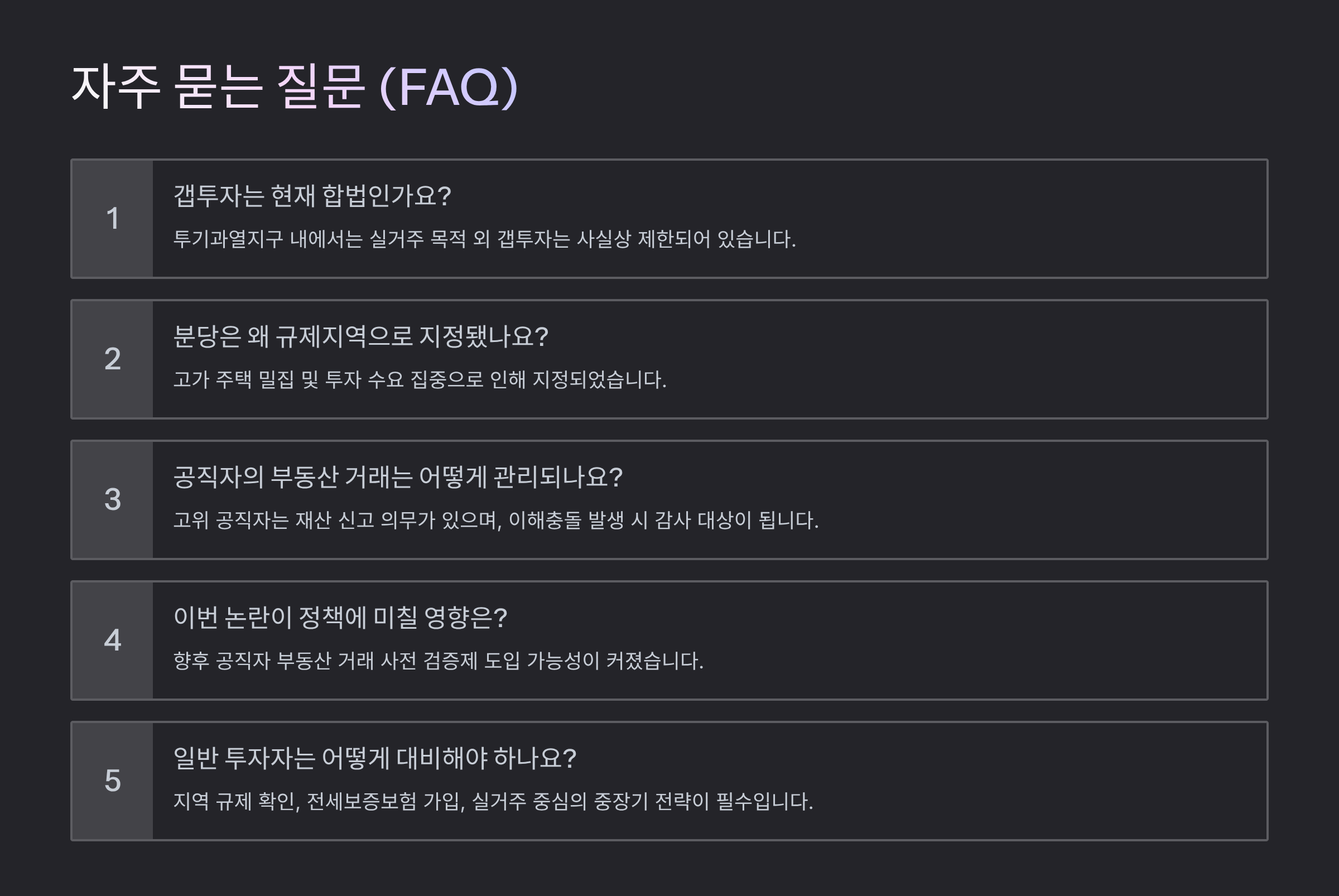 → 투기과열지구 내에서는 실거주 목적 외 갭투자는 사실상 제한되어 있습니다.