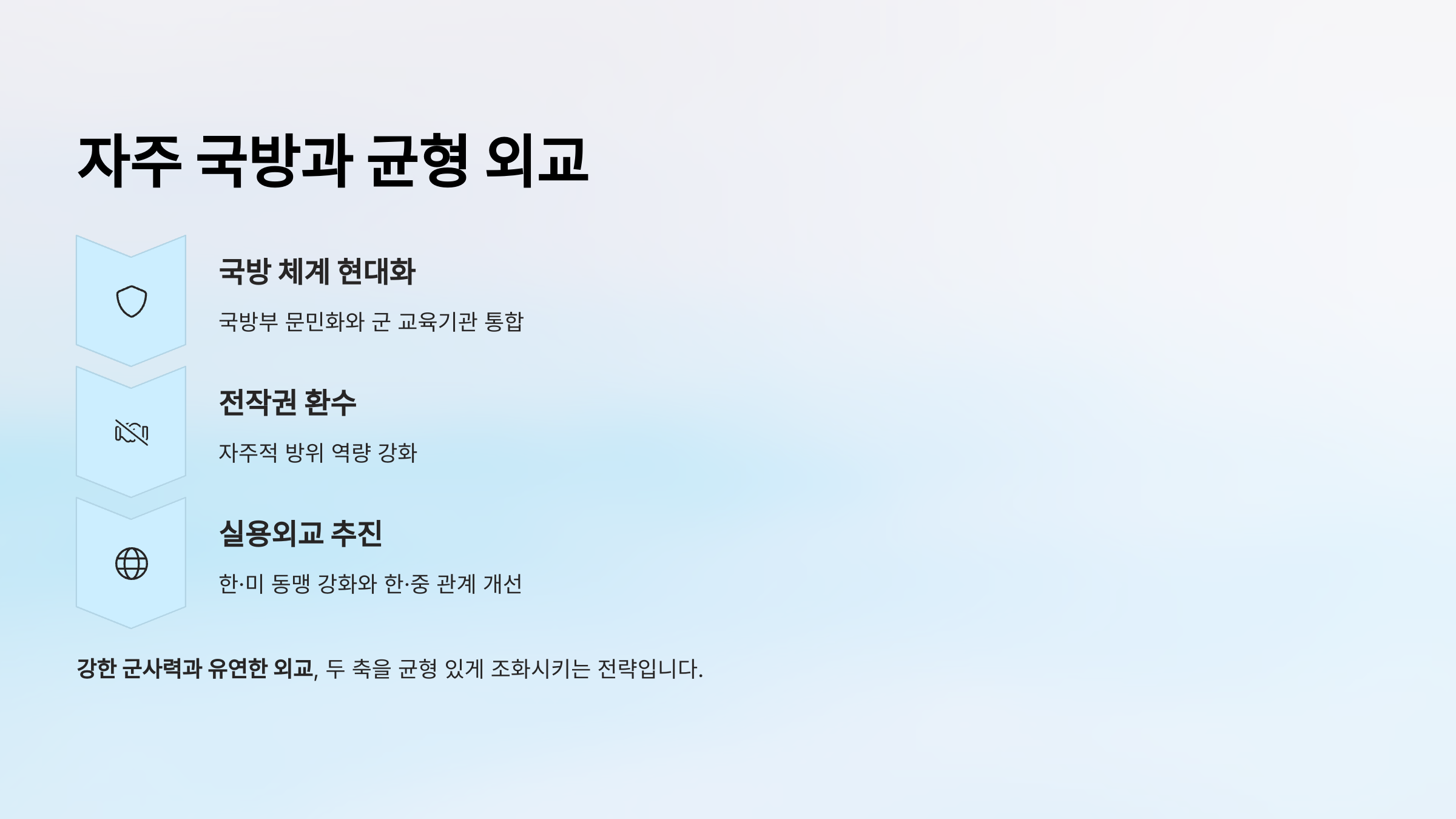 🛰️ 안보·외교 전략: 자주국방과 균형 외교