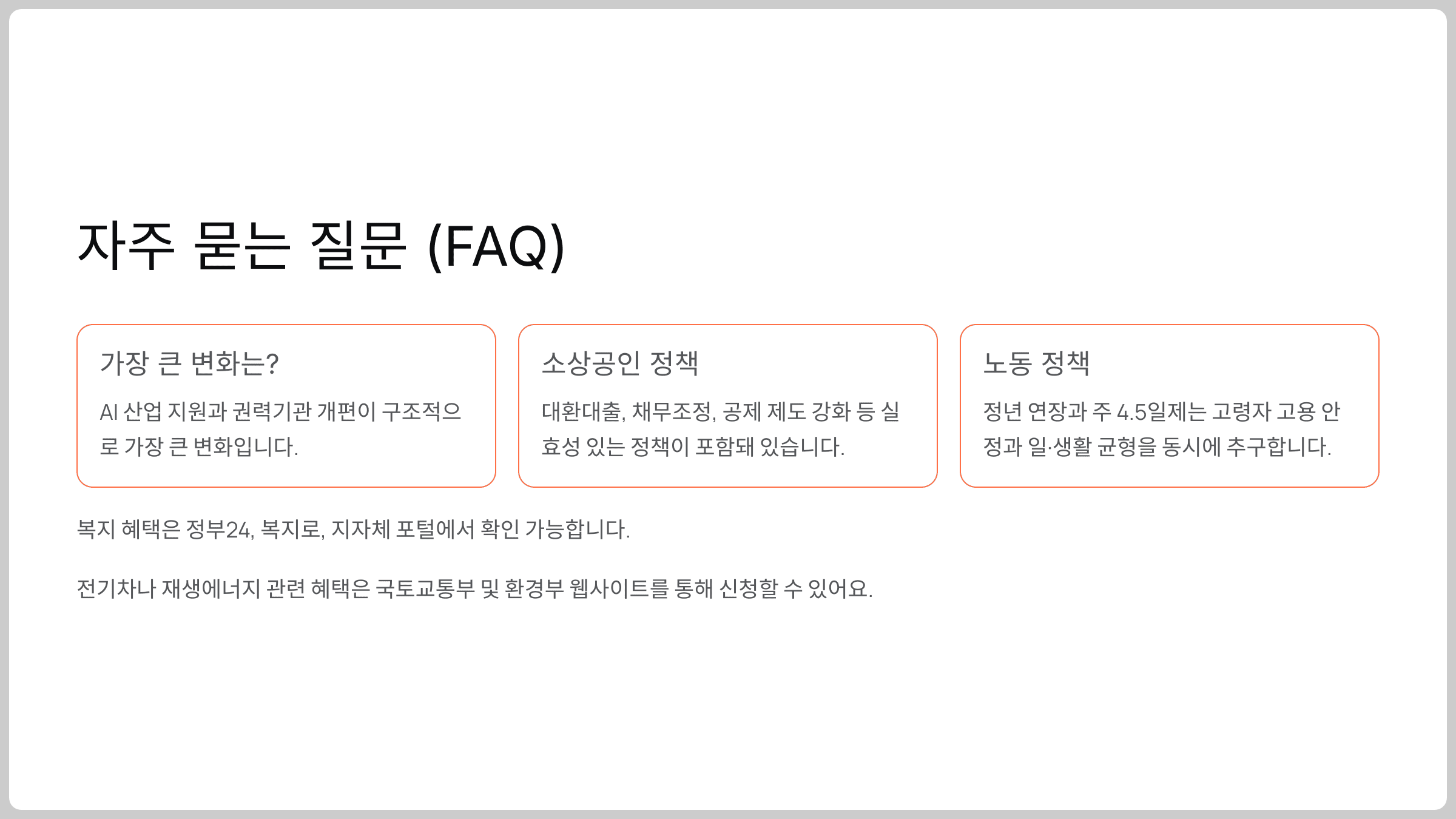 AI 산업 지원과 권력기관 개편이 구조적으로 가장 큰 변화입니다.