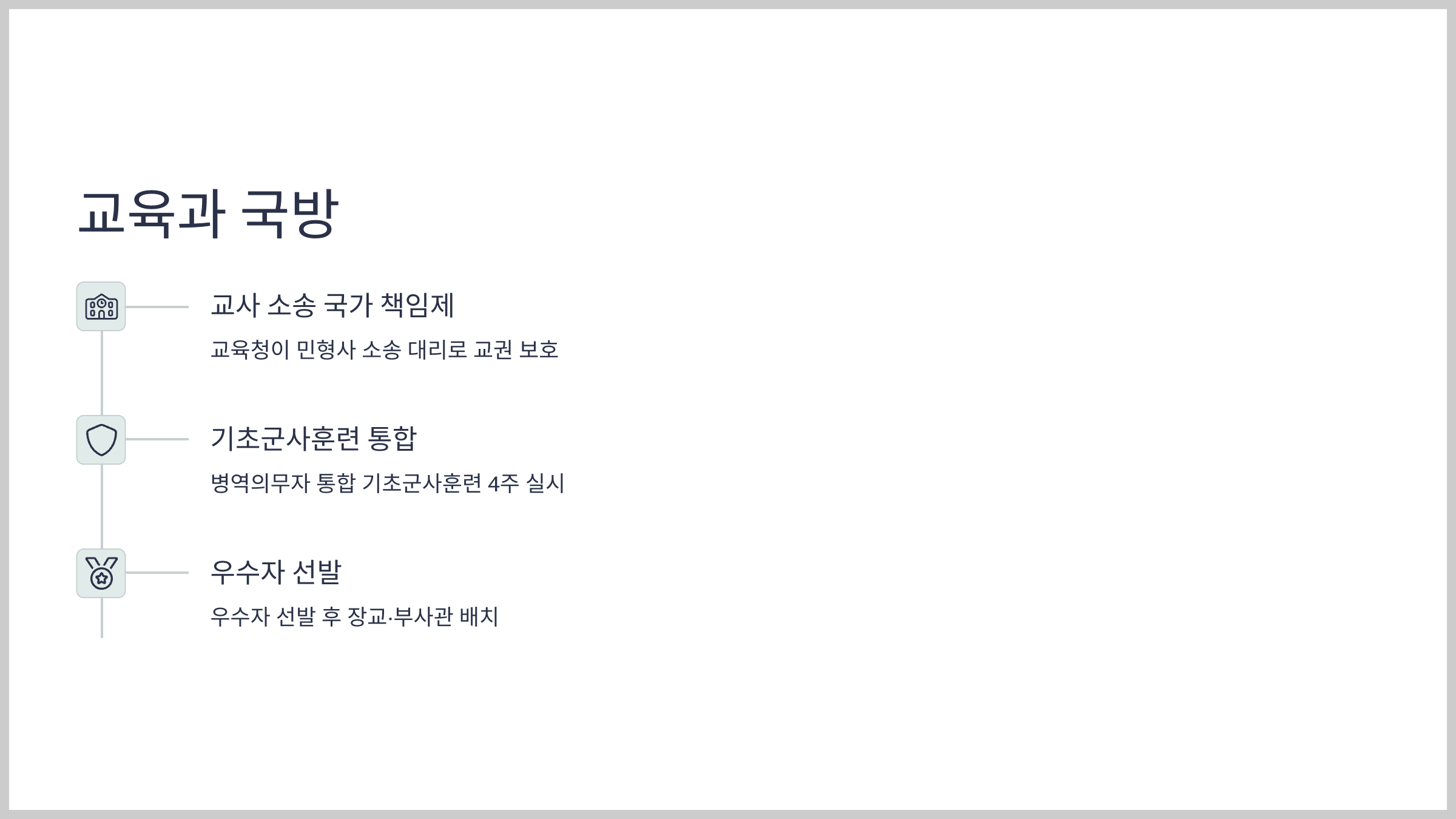 교권 보호와 군 인재 효율 선발을 동시에 노린 개혁안입니다.