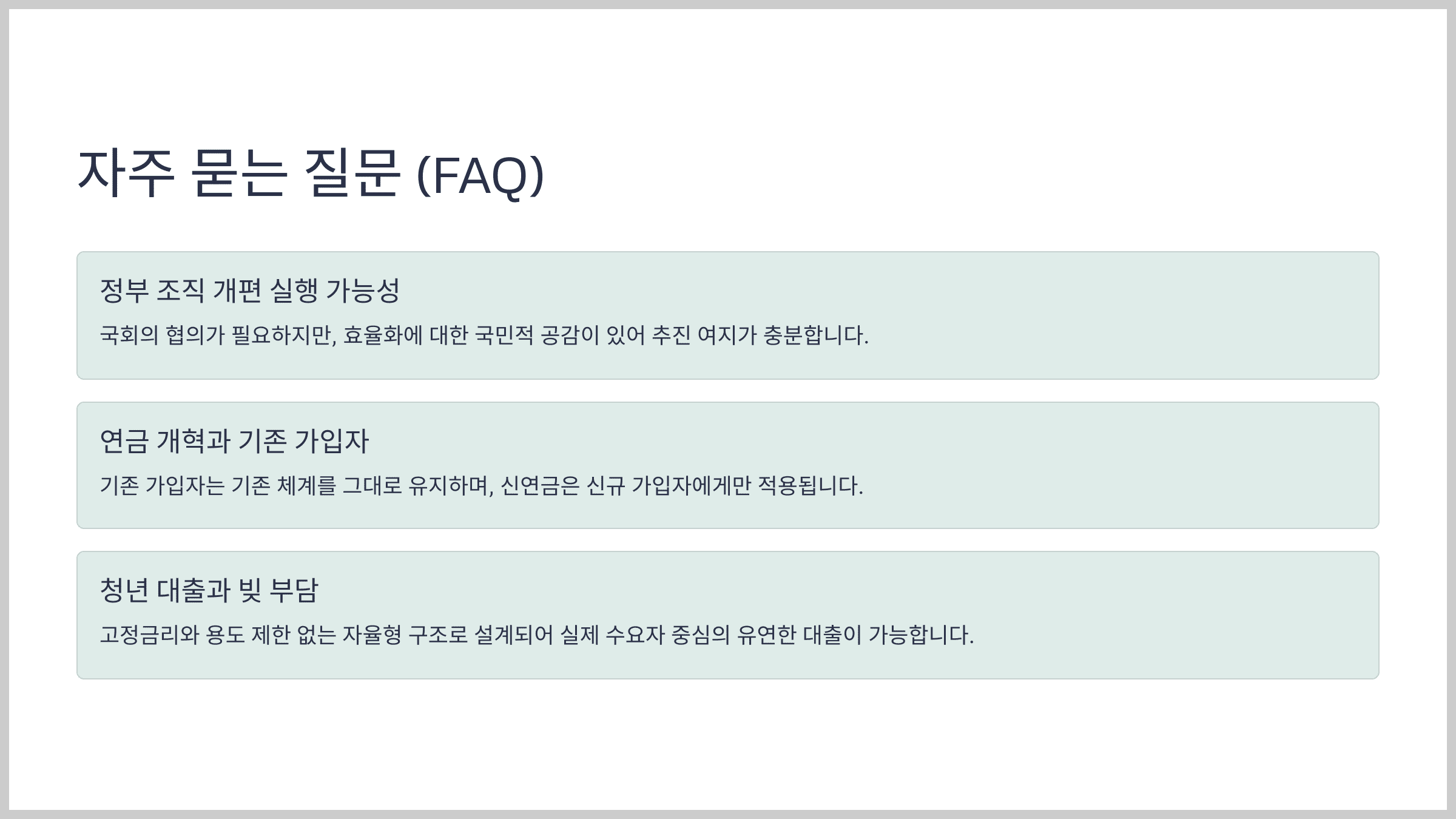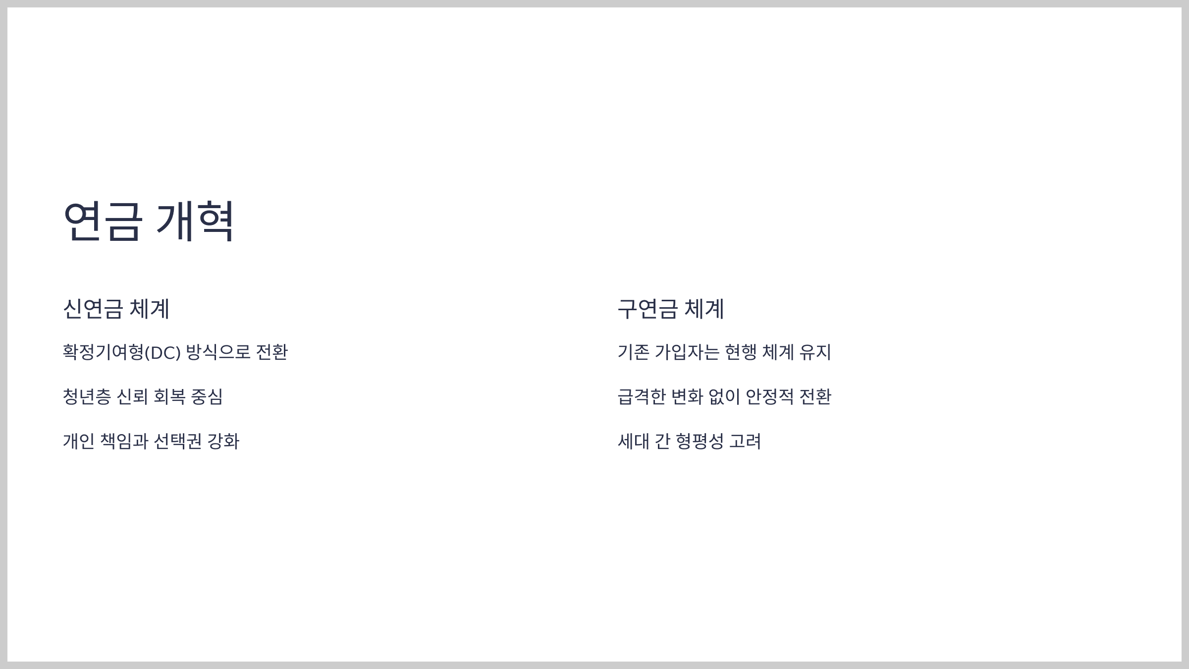 🔹 연금 개혁: 청년이 신뢰할 수 있는 구조로