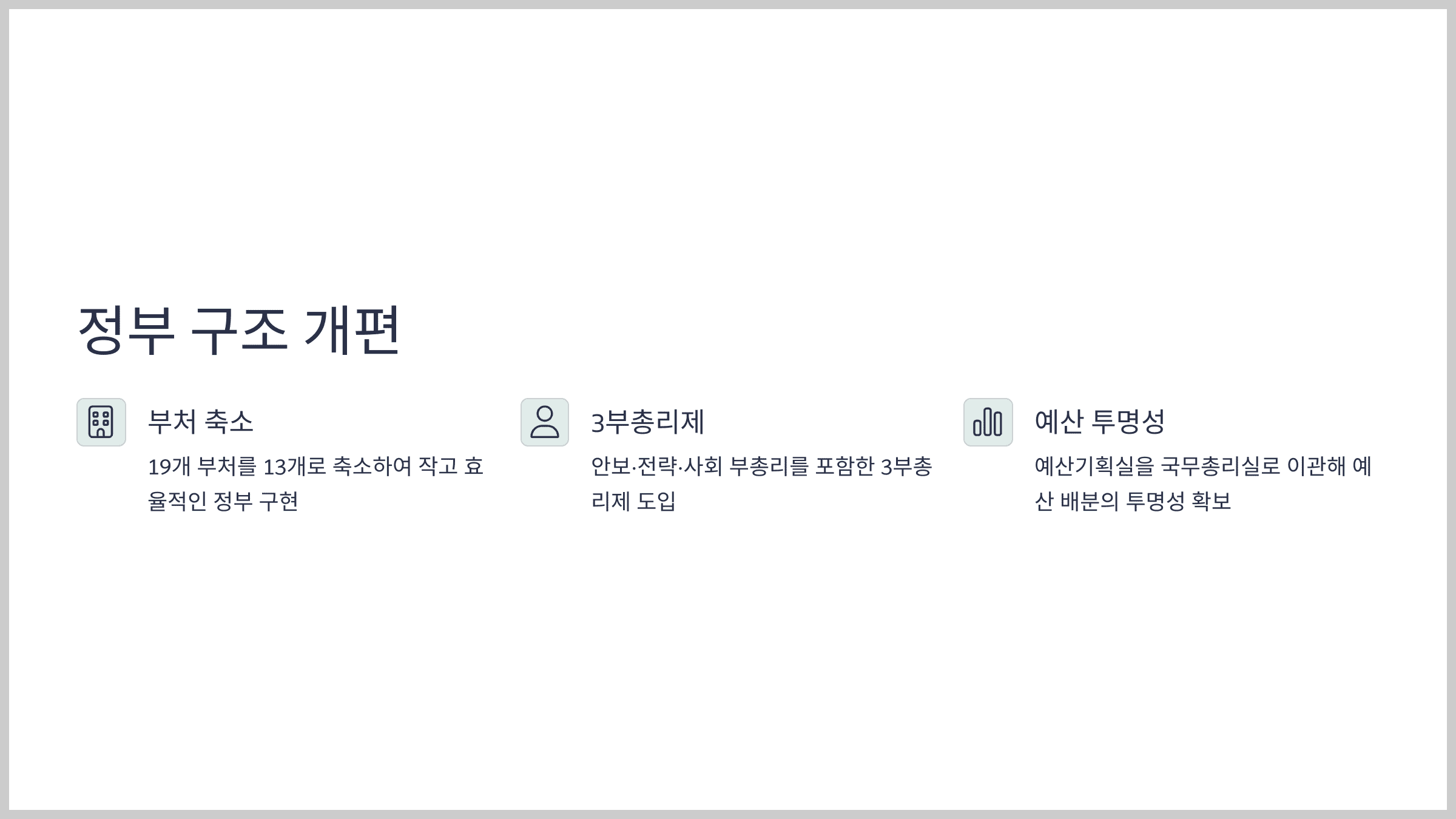 🔹 정부 구조 개편: 작고 효율적인 정부 만들기