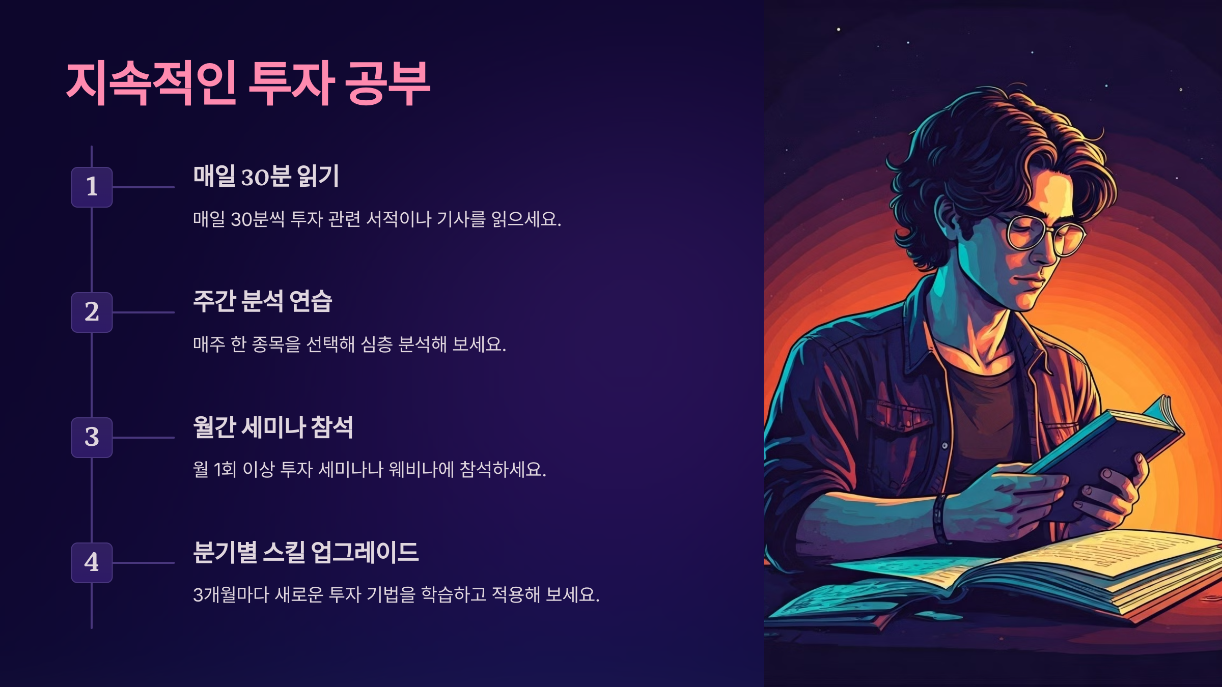 - 독서를 통해 깊이 있는 이해력 키우기: 투자 서적을 정기적으로 읽으세요.