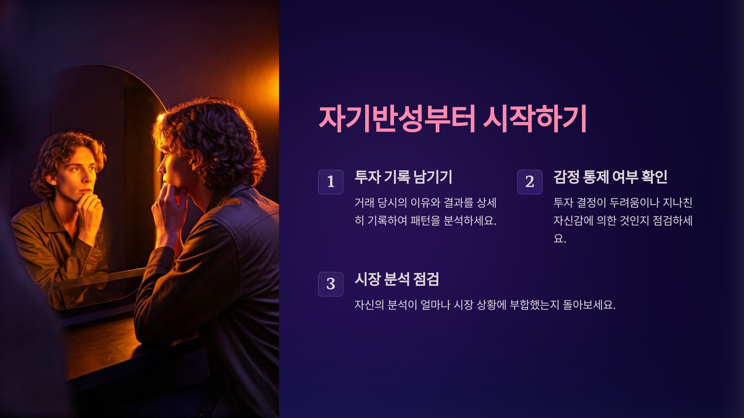 - 감정 통제 여부 확인: 투자 결정이 두려움이나 지나친 자신감에 의해 이루어진 것은 아닌지 점검하세요.