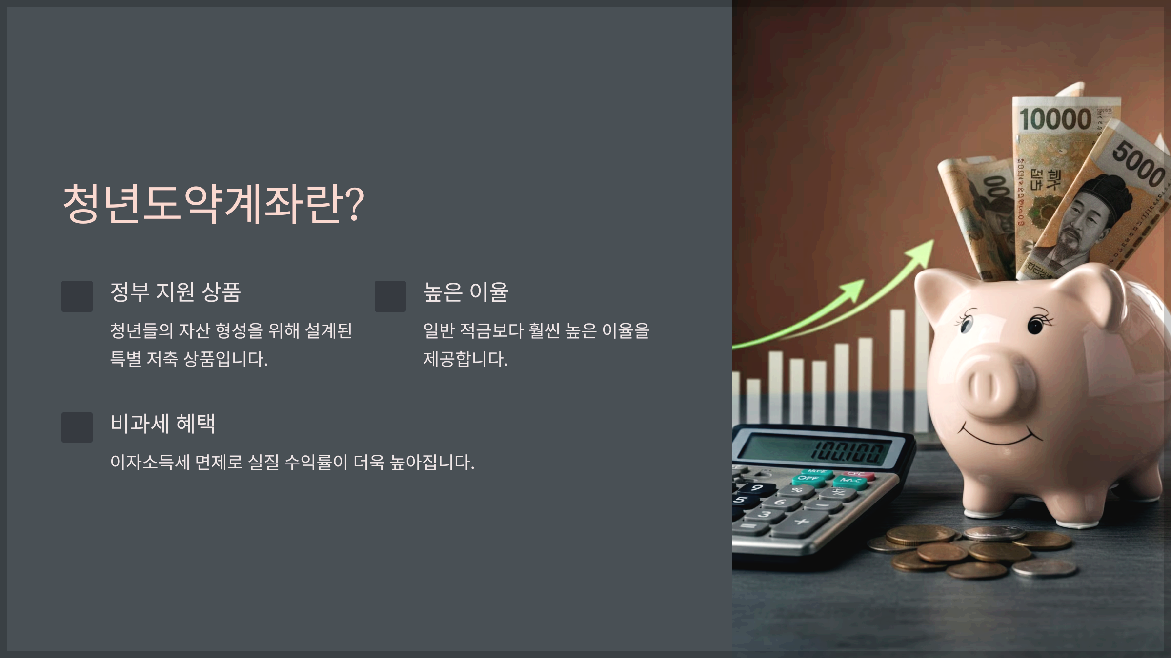 청년도약계좌는 정부가 청년들의 자산 형성을 돕기 위해 설계한 특별 저축 상품입니다. 솔직히 말해 처음에는 너무 좋은 조건이라 뭔가 숨겨진 게 있는 거 아니야?라는 생각이 들었어요. 하지만 자세히 알아보니 정말 믿을 만한 상품이더라고요. 일반 적금과 비교할 수 없는 높은 이율과 비과세 혜택은 단기간에 목돈을 마련할 수 있는 최고의 선택이었어요.