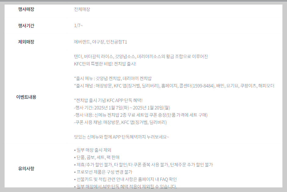 켄치밥 KFC 신메뉴 데리야끼, 갓양념 행사 가격입니다.