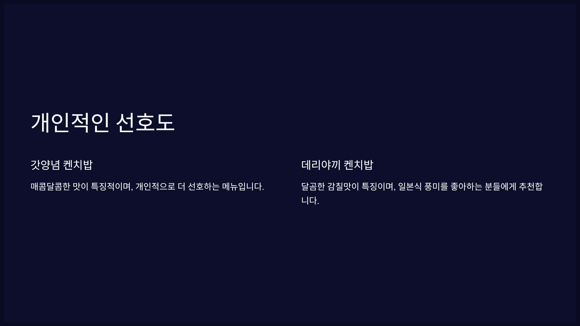 점심 메뉴를 고르는 게 항상 고민이었는데, 이번에 KFC에서 출시한 '켄치밥'이 정말 마음에 들어요. 맛도 좋고 가격도 합리적이라 바쁜 하루에도 든든한 한 끼를 해결할 수 있었습니다.