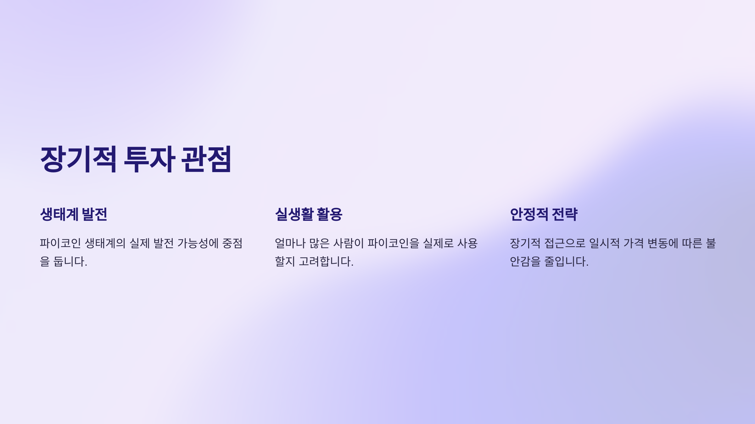 파이코인을 장기적인 관점에서 바라보고 있습니다. 단기적인 이익보다는 파이코인 생태계가 실제로 어떻게 발전하고, 얼마나 많은 사람이 이를 실생활에 사용할 수 있을지에 중점을 두고 있습니다. 이러한 접근은 일시적인 가격 변동으로 인한 불안감을 줄여주며, 더욱 안정적인 투자 전략을 구축하는 데 도움이 됩니다.