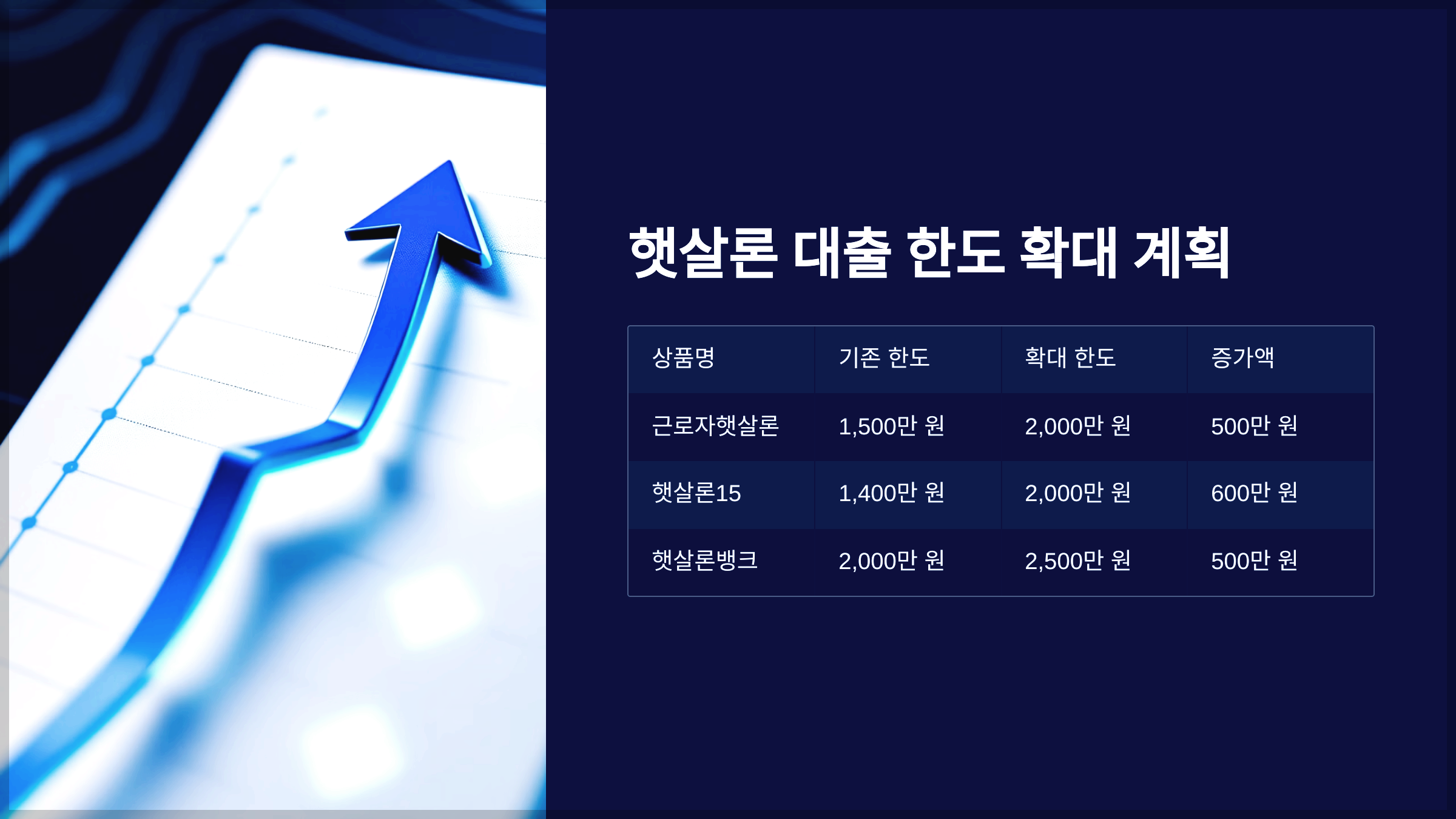 이번 대출 한도 확대는 정책 서민 금융 총 공급 규모를 기존 연간 10조 원에서 11조 원으로 늘리는 계획의 일환입니다. 이를 통해 저신용·저소득 근로자, 최저 신용자, 그리고 1 금융권 진입을 준비하는 저소득·저신용자들에게 더 많은 금융지원을 제공할 수 있게 되었습니다.