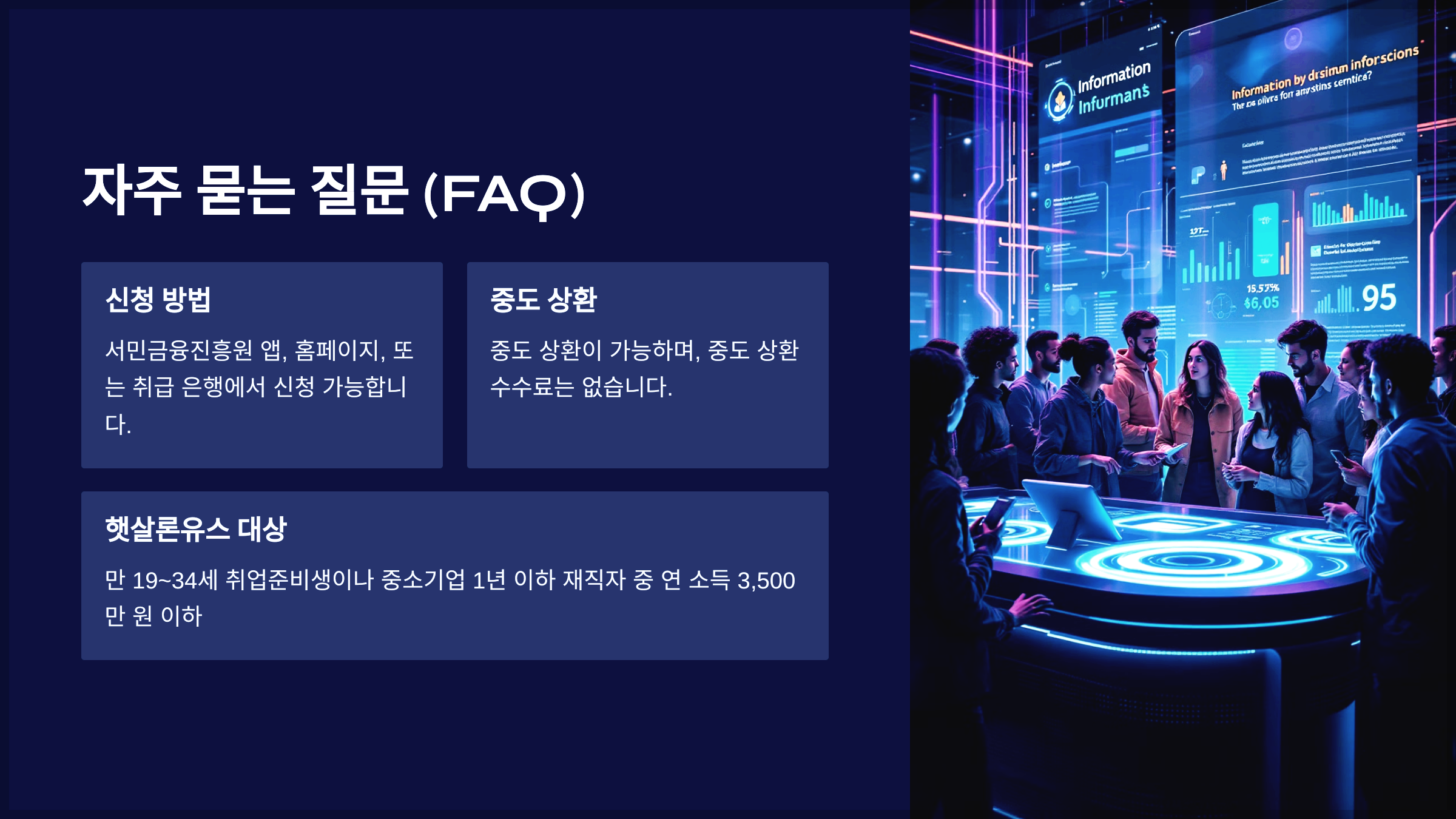 • A: 서민금융진흥원 앱이나 홈페이지, 또는 취급 은행에서 신청할 수 있습니다.