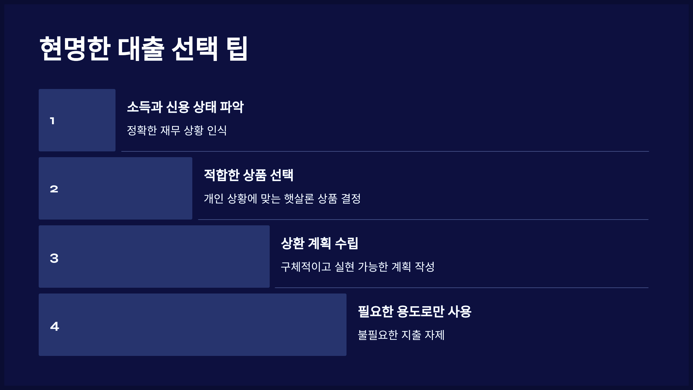 • 상환 계획 수립: 대출 신청 전에 구체적인 상환 계획을 세우는 것이 중요합니다.