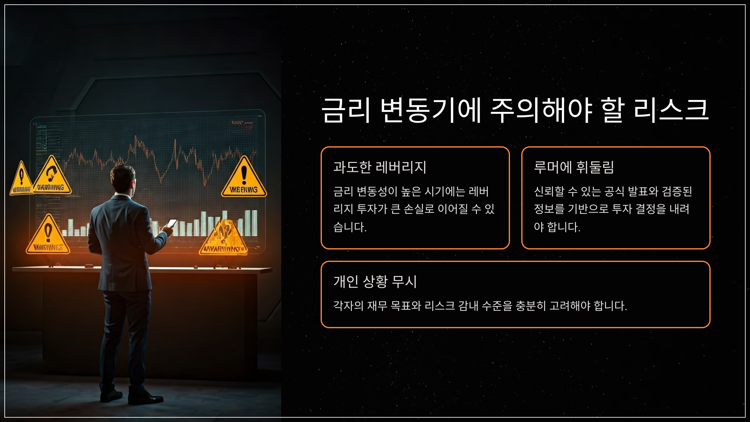 금리 변동성이 높은 시기에는 레버리지를 활용한 투자가 큰 손실로 이어질 수 있다. - 루머에 휘둘리지 않기:
